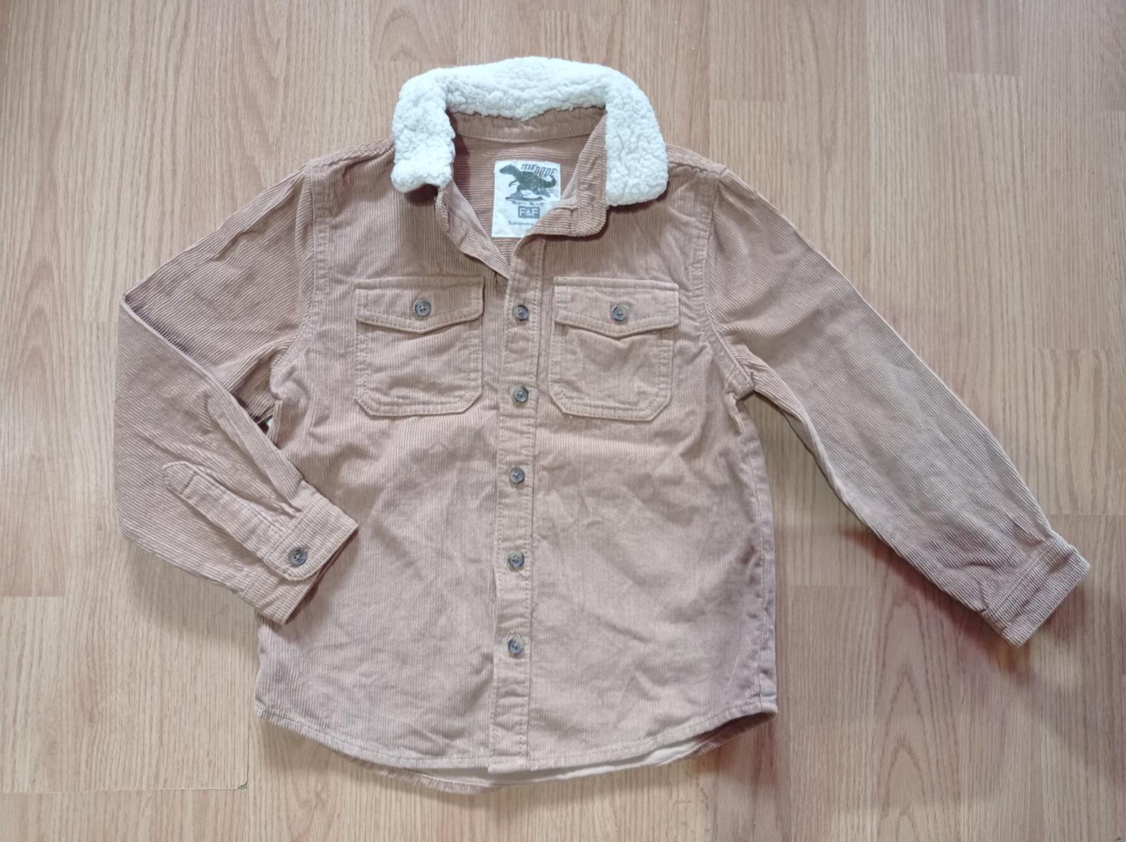 Bundička béžovej farby, vnútro je z úpletu, odolná voči vetru, na 6-7 rokov, bez kapucne, D-48cm, zadný diel je trochu dlhší. Rukáv od pleca je 41cm, šírka je 46cm, má funkčné zipsy, množstvo vrec...
