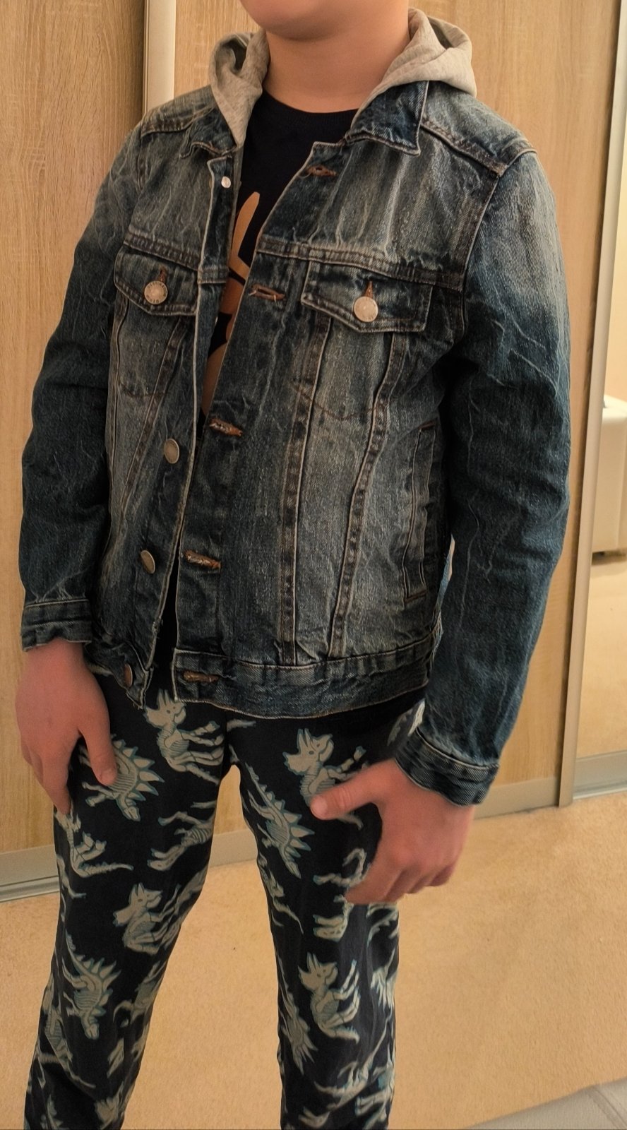 Veľmi pekne riflova bunda, super stav, pekne sedí. Na vek cca i-9 rokov