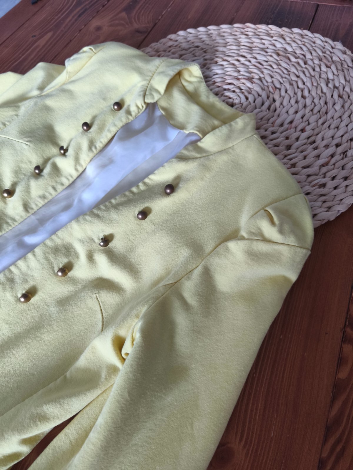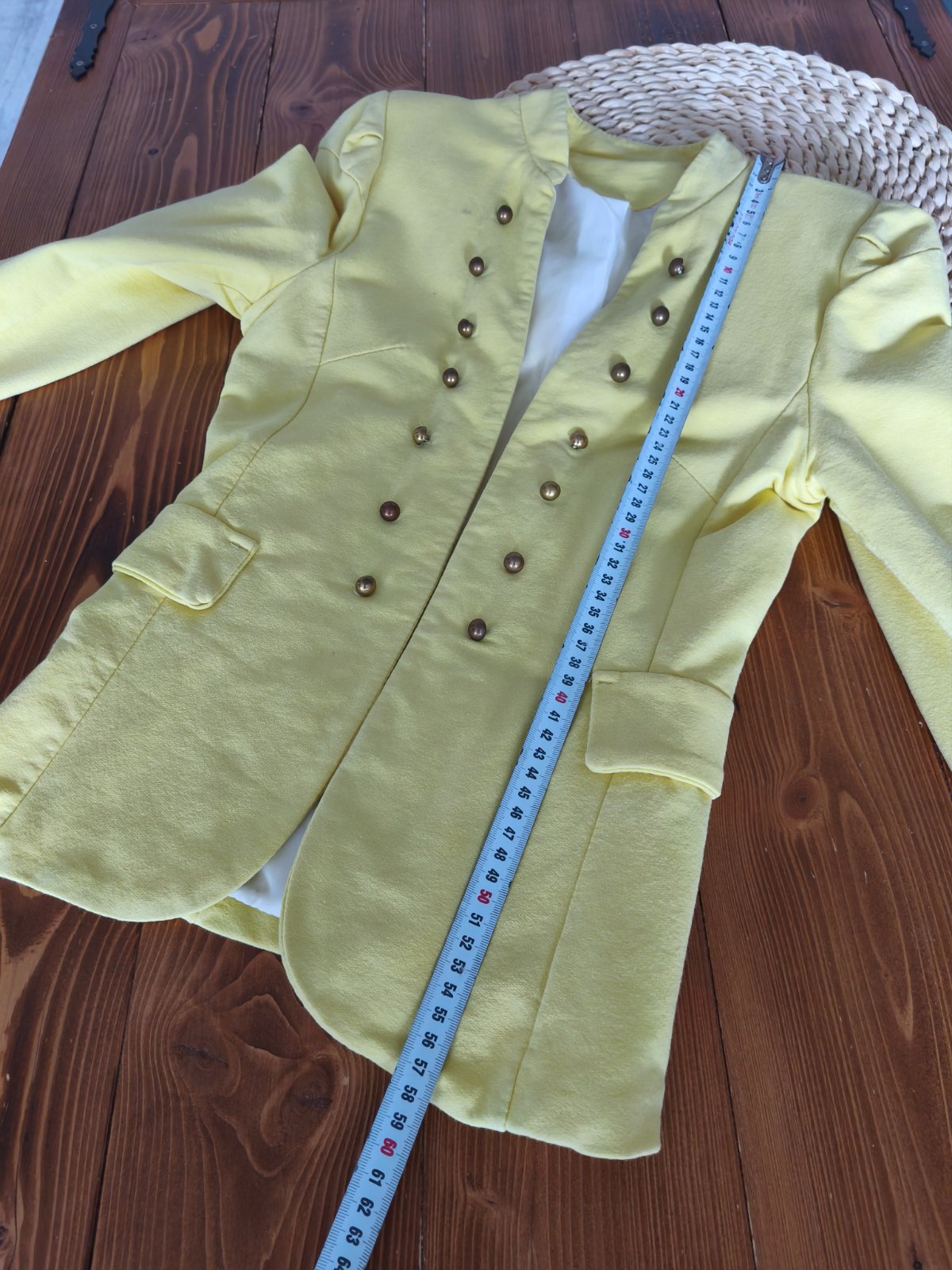 Nadherny kabatik jadnej farby Kabatik sa nezapina Rukav 3/4 Perfektny stav Strih Oversize Sedi na XS S dĺžka 74 cm rukáv trištvrtovy 64 cm nie zapnutý 47 x2 a chrbát padnuté ramena 50cm Vaha do 1kg