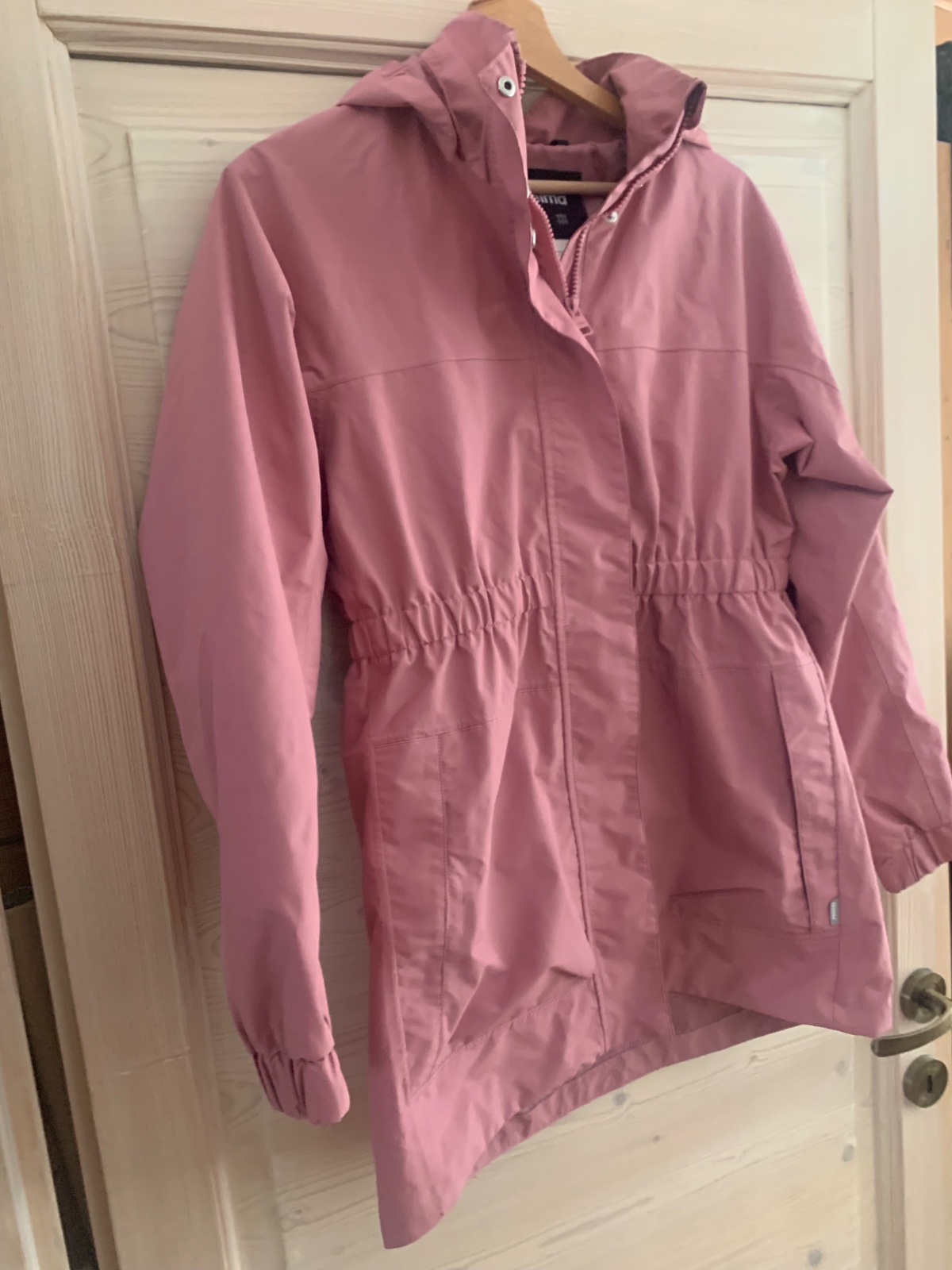 top stav, super sedí, dcéra ju však odmietla nosiť, naozaj ako nová až na mini čiarku na vrecku a niečo čierne na vnútornej podšívke pri štítku, odfotené, sedí na 158 a aj 164, je nepremokavá a neprefúkavá