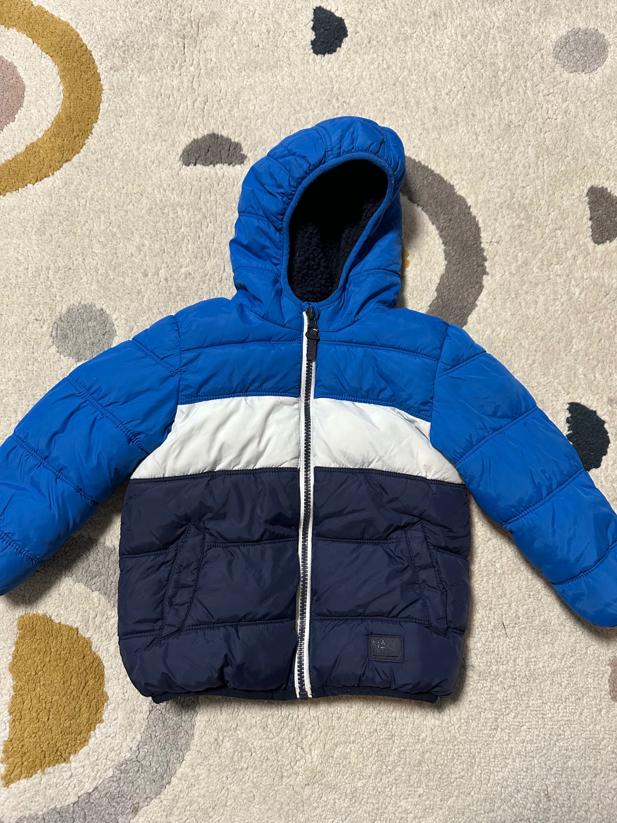 Po mojich dvoch chlapcoch.Pekny noseny stav, sem tam je na nej také ako keby zasklbnute nitky, ale pri nosení to není nejako vidieť.Je naozaj super teplucka.Vnutro flis, je hrubšia. + Pošta