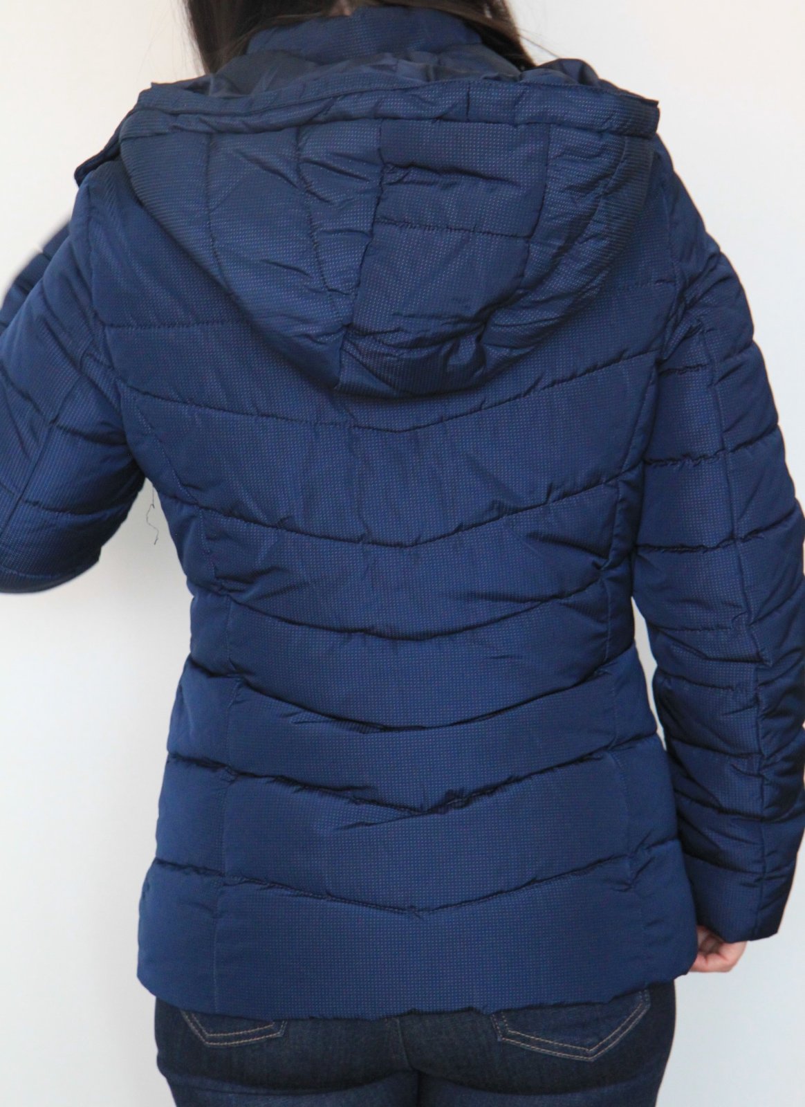Nosená bunda vo veľmi dobrom stave. V golieri okolo krku sa po praní výplň sustredila dk jedneho miesta, pri nosení neprekáža a so šálom nevidno. Dá sa pracne porozťahovať po bokoch.