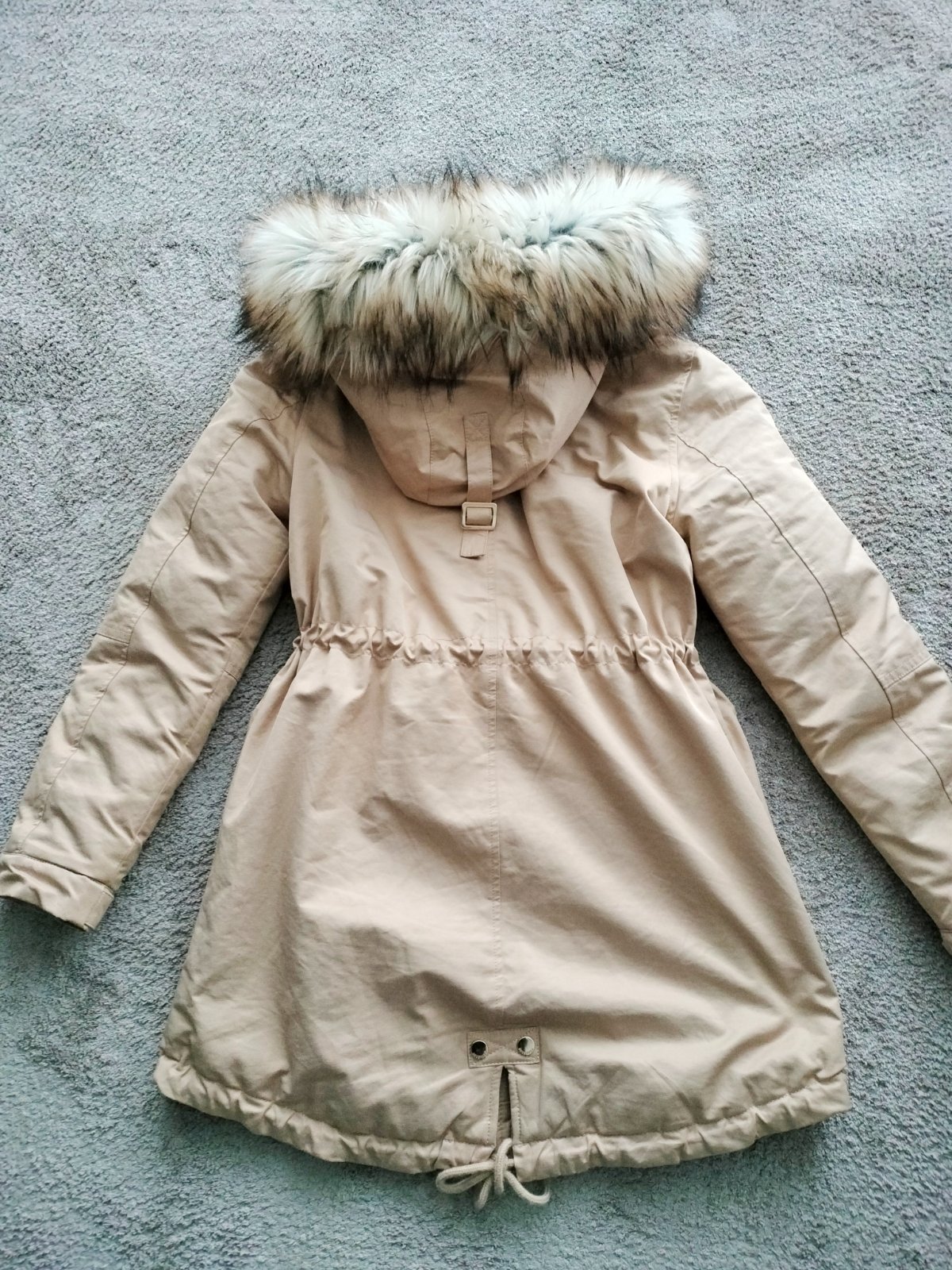 Krásna teplá zimná párka,s jemnou kožušinkou vo vnútri.velka kožušina na kapucke ktorá sa dá odopnut. Je v dobrom stave akurát pri vackoch kde je tenký pásik kože tak sa olupuje, opraviť sa dá, ale...