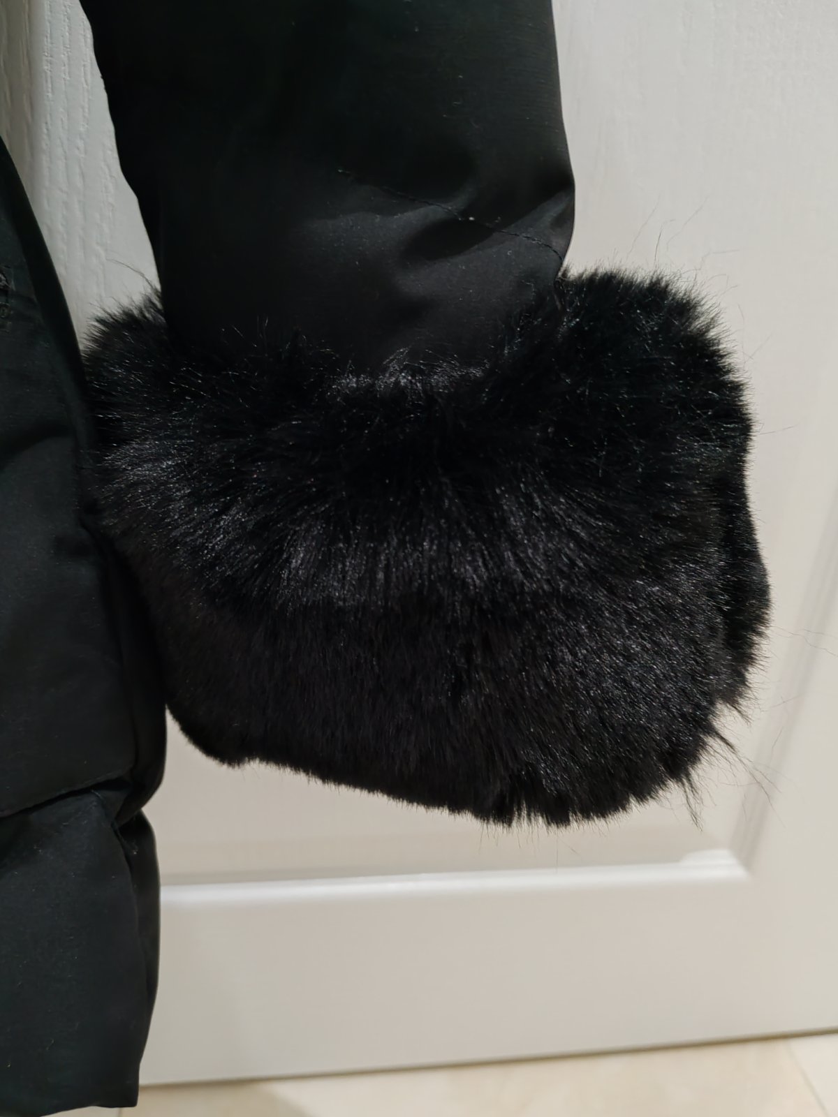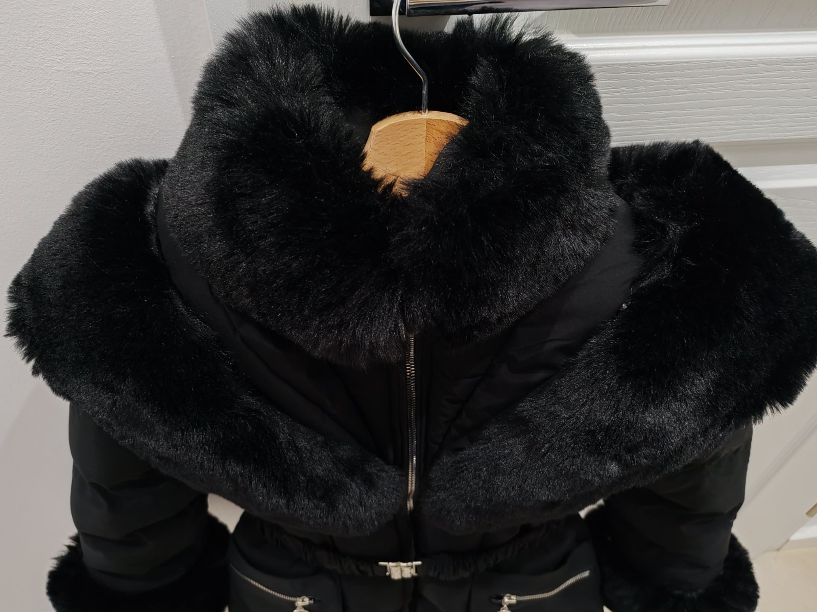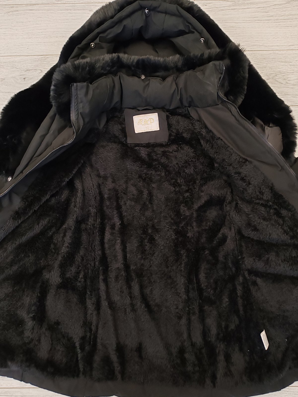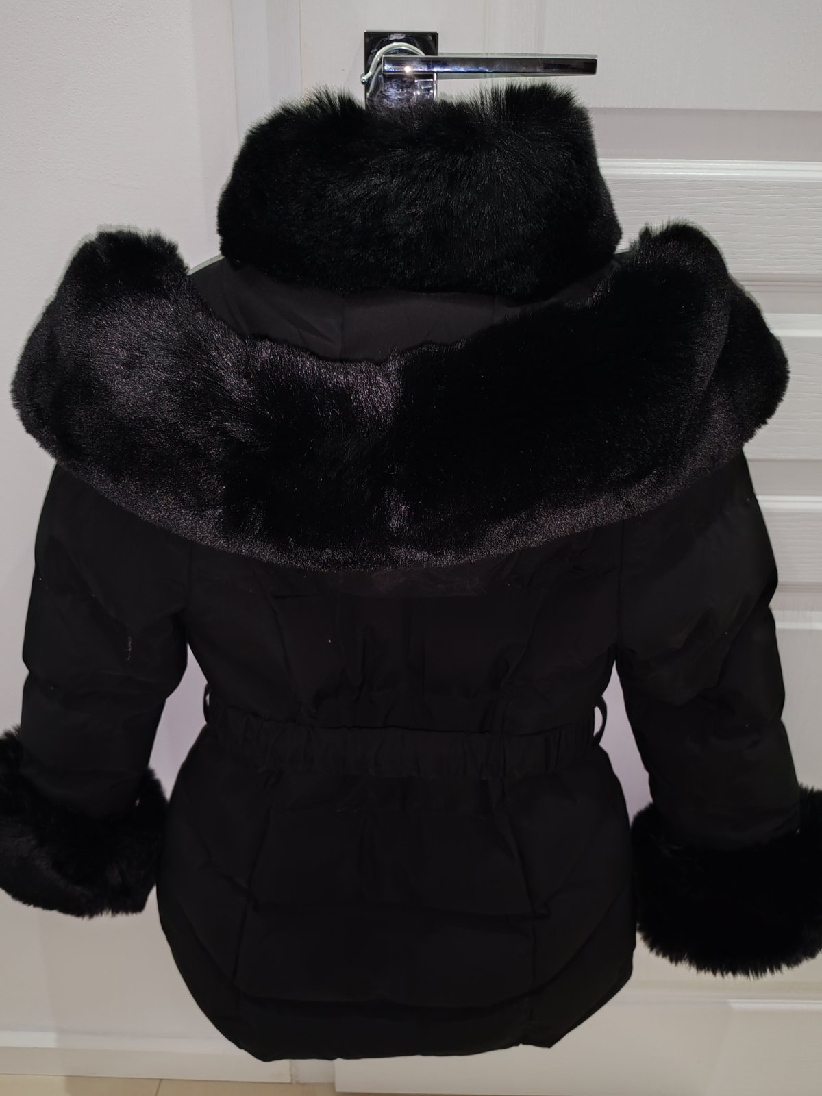 Predám krásny kabát veľkosti 140, 10r. Kabát je zvnútra zateplený kožušínkou. Kožušina je taktiež na koncoch rukávov na golieri a po kraji kapucne.