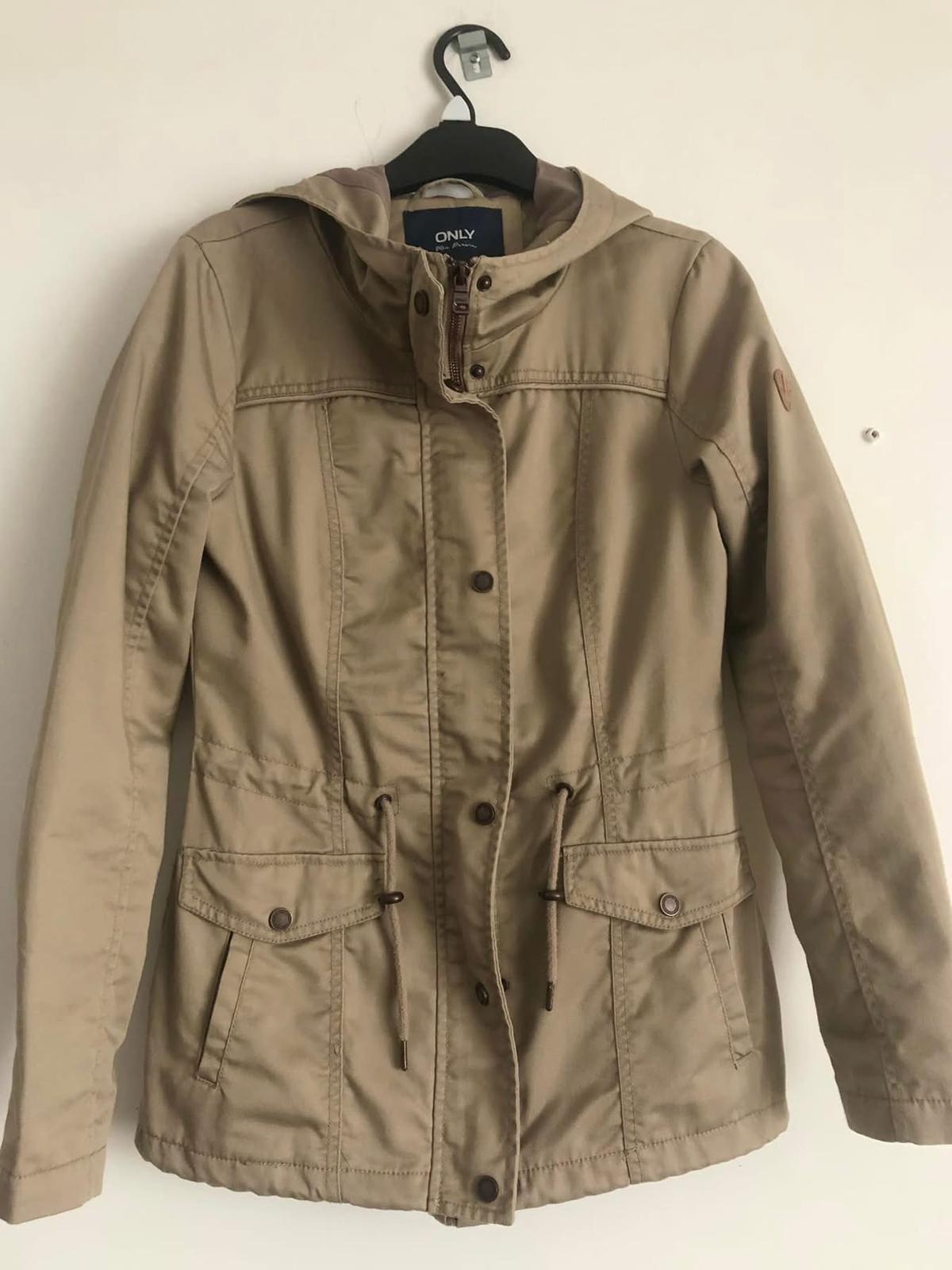 Trendy jesena jarna parka bunda bezova s kapucou