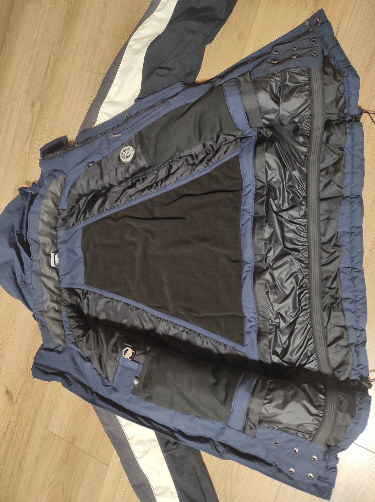 Nosena, no stale pekna. Tmavo-modra s maskacovym vzorom. Nosenie vidiet na rukavoch.