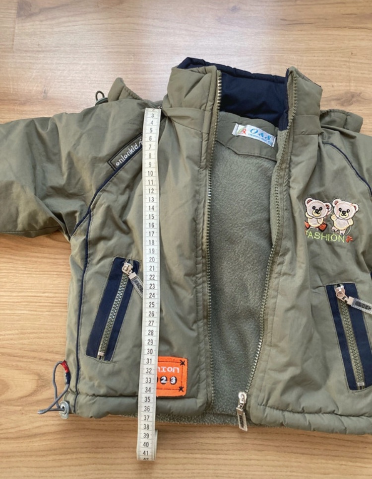 Teplá bundička,neuvádza veľkosť-nosili sme ako 92/pozri rozmery/.