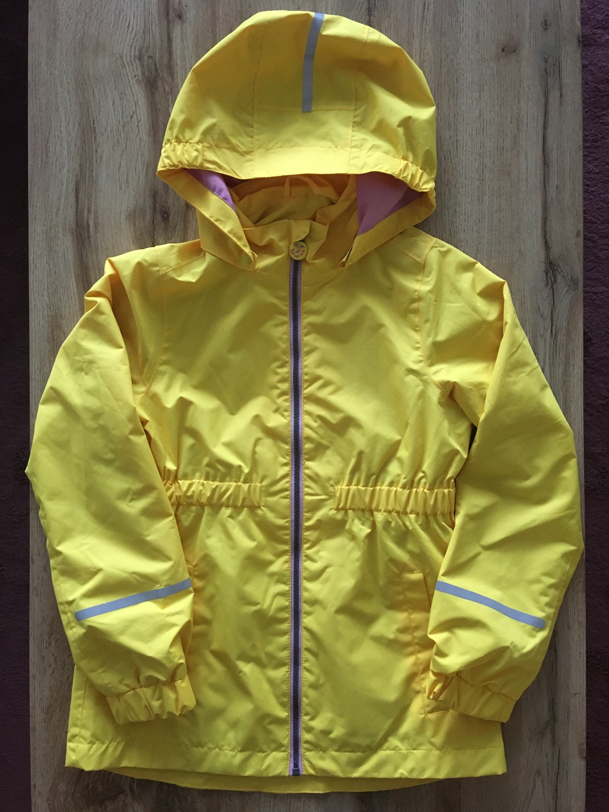 Ako nová, párkrát oblečená tenká prechodná vetrovka predĺženého strihu ako kabátik,nepremokavá - aj do dažďa. S taftovou podšívkou. Značka Tchibo, veľkosť 134/140.