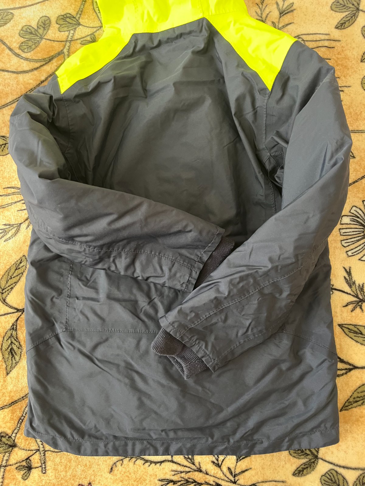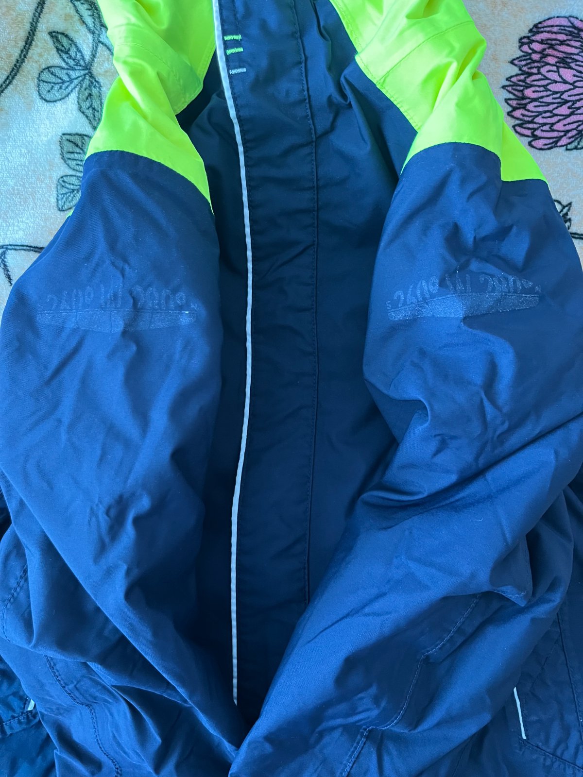 Prechodná bunda vo veľmi peknom stave, až na nálepky, ktoré som ztrhla keďže sa už odliepali. Dĺžka: 54cm, šírka 41cm, rukáv od ramena: 47cm.