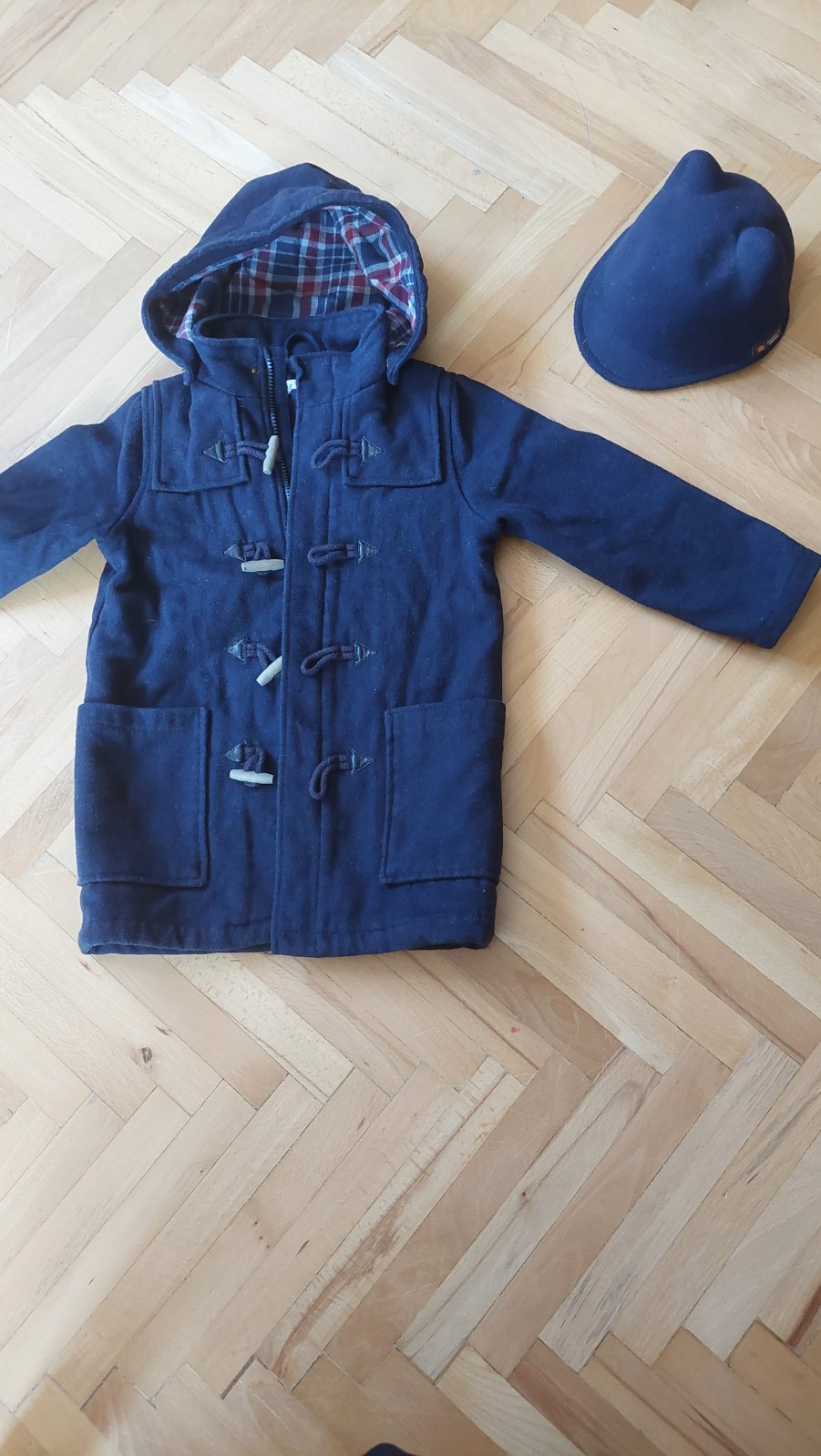 Nosený, ale stále dobre vypadajúci kabátik pre malých fešákov či fešáčky vo veku 5-6 rokov. PC 29€. Rozmery: zadný chrbát 60cm; dlzka rukáva 41 cm; širka pod pazuchami 40cm. Zapina sa na zips a aj na gombicky. Hodí sa k nemu užasný klobúčiť, ktorý tiež nájdete na mojom koníkovi a tiež na fotkách. Dĺžka chrbta 50cm; spodná dlzka rukava 32cm a vrchná 49cm a sirka pod pazuchami 39cm.