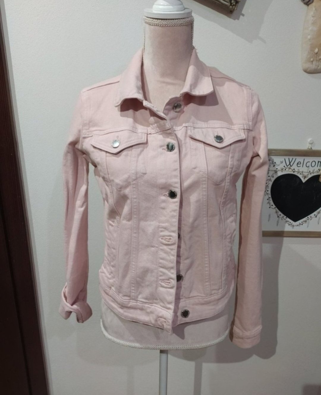 Krásna riflová bunda ,crop strihu,3/4 rukávy.Bunda je v top stave,materiál jemny s elastanom Dl 41,šírka 46*2,v