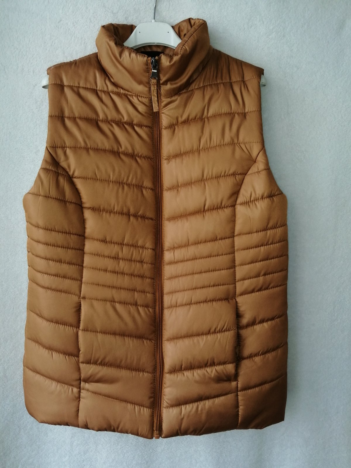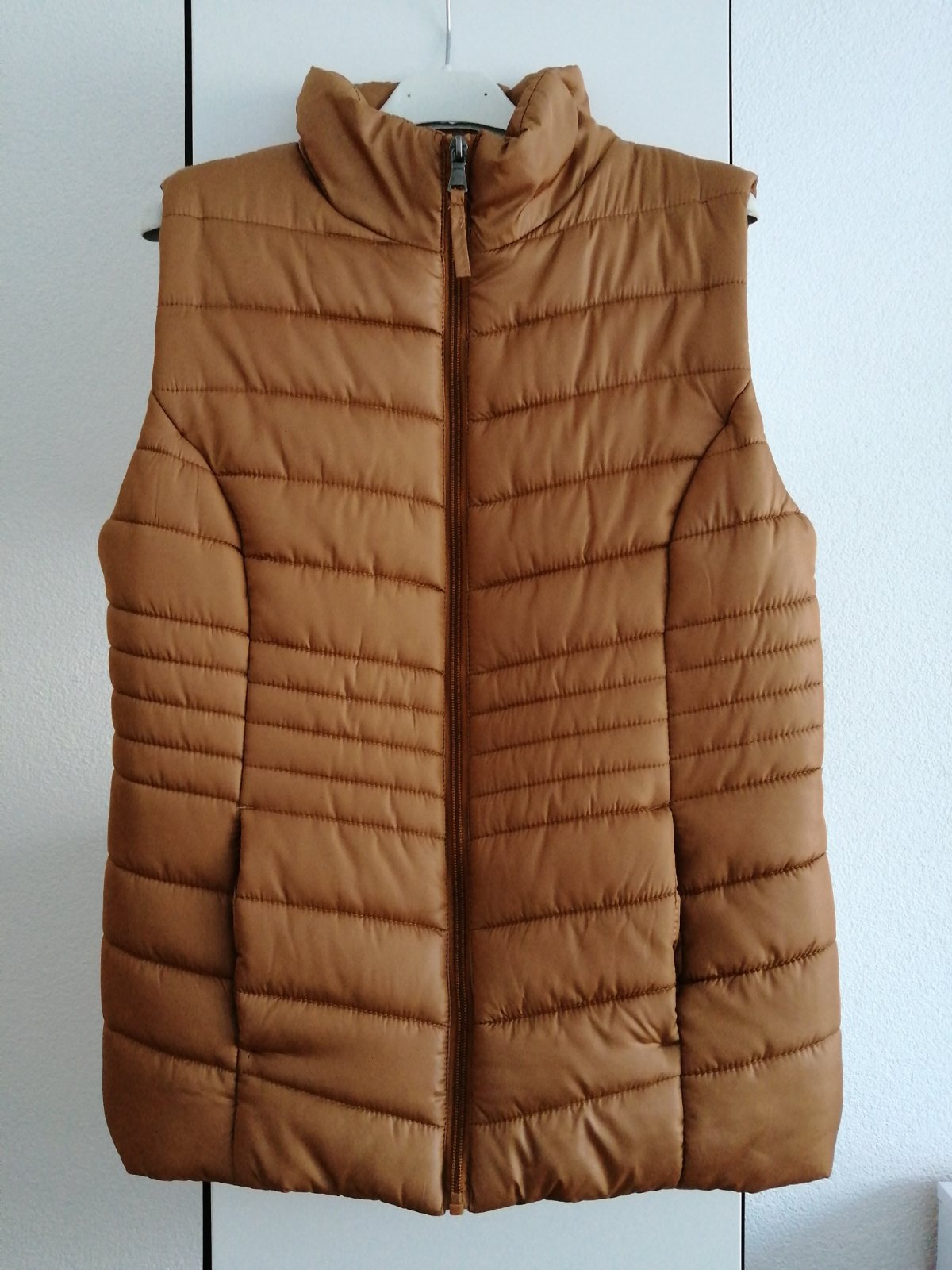 Prechodná zateplená vesta vo veľ. 36 alebo S. Hnedý oddieň- škoricovej farby. Vhodné na jeseň/jar. Vesta je v top stave, mala som ju 4-5 x oblečenú minulý rok, žiaľ je mi už tesnejšia. Cena 7,50 eur + poštovné