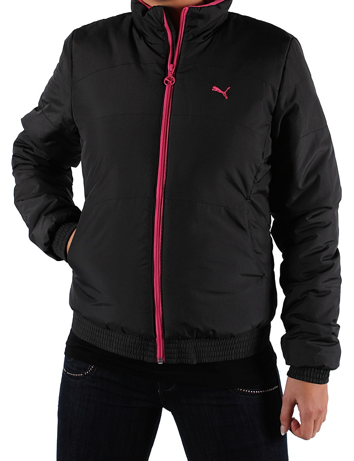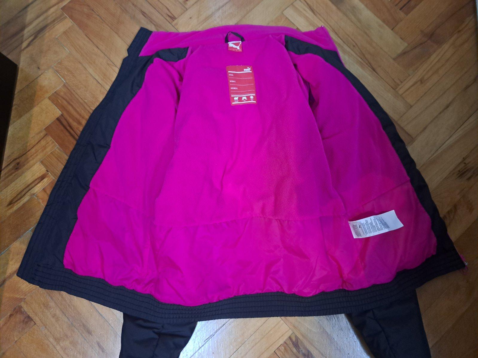 Tepla jesenna bunda s flisom vo vnutri. Mozno aj na teplejsiu zimu. Cierna s ruzovymi detailami.