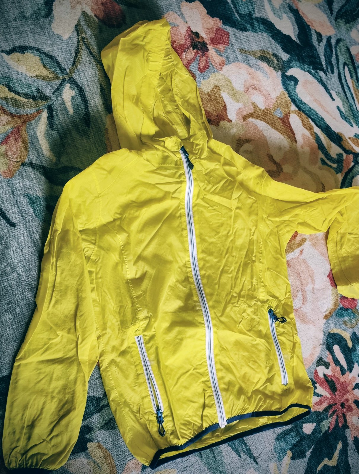 Perfektná letná bundička na výlety do ruksaku,je proti dažďu.