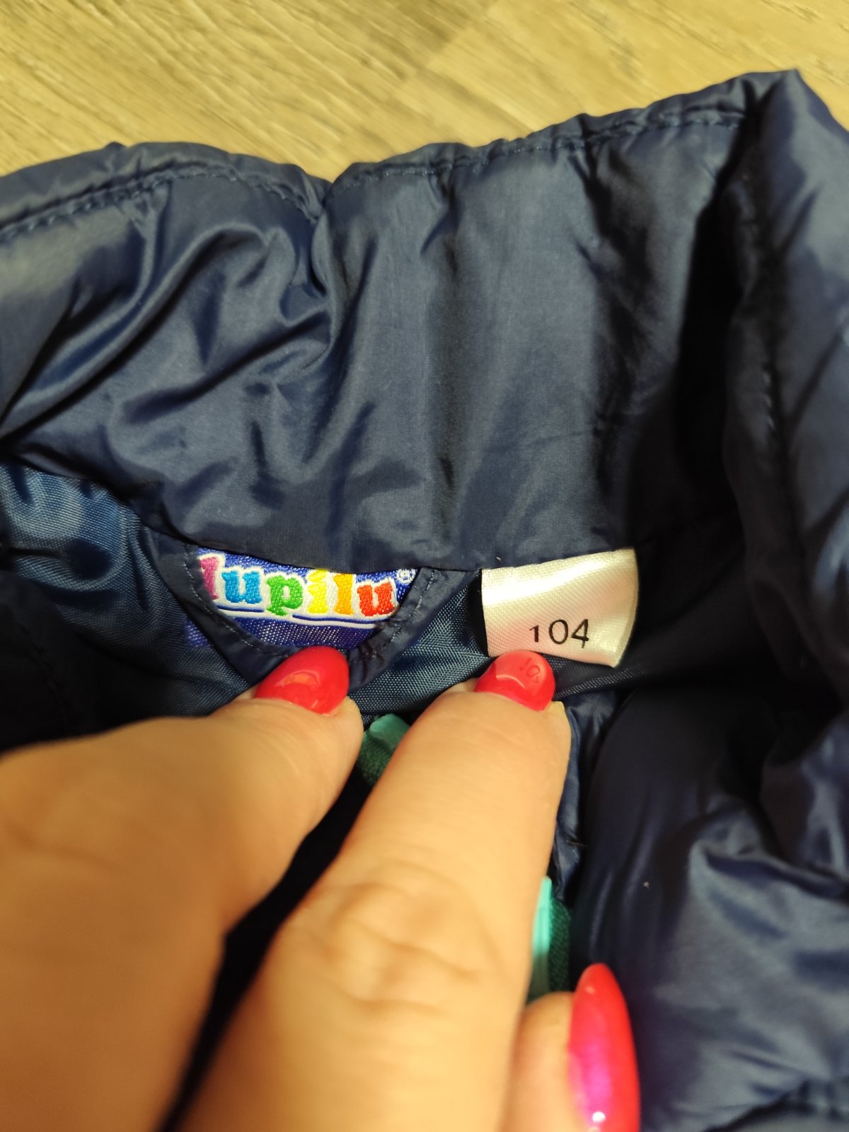 Tmavomodrá prechodná bunda pre chlapca značky lupilu, veľkosť uvedená 104, vo veľmi dobrom stave, vhodná na jar/jeseň.