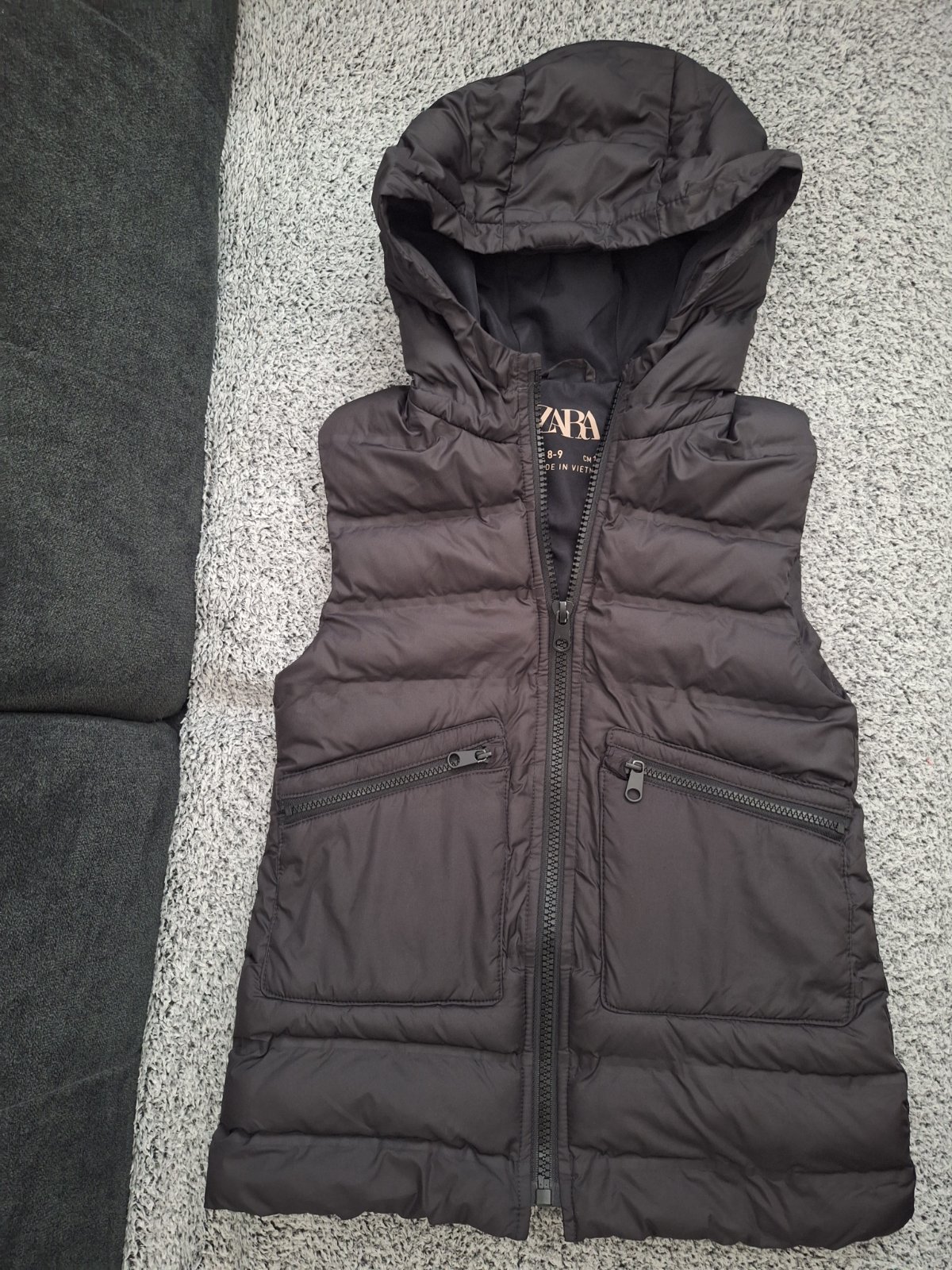Vesta Zara na jar, jeseň má vrecká a je s kapucňou.