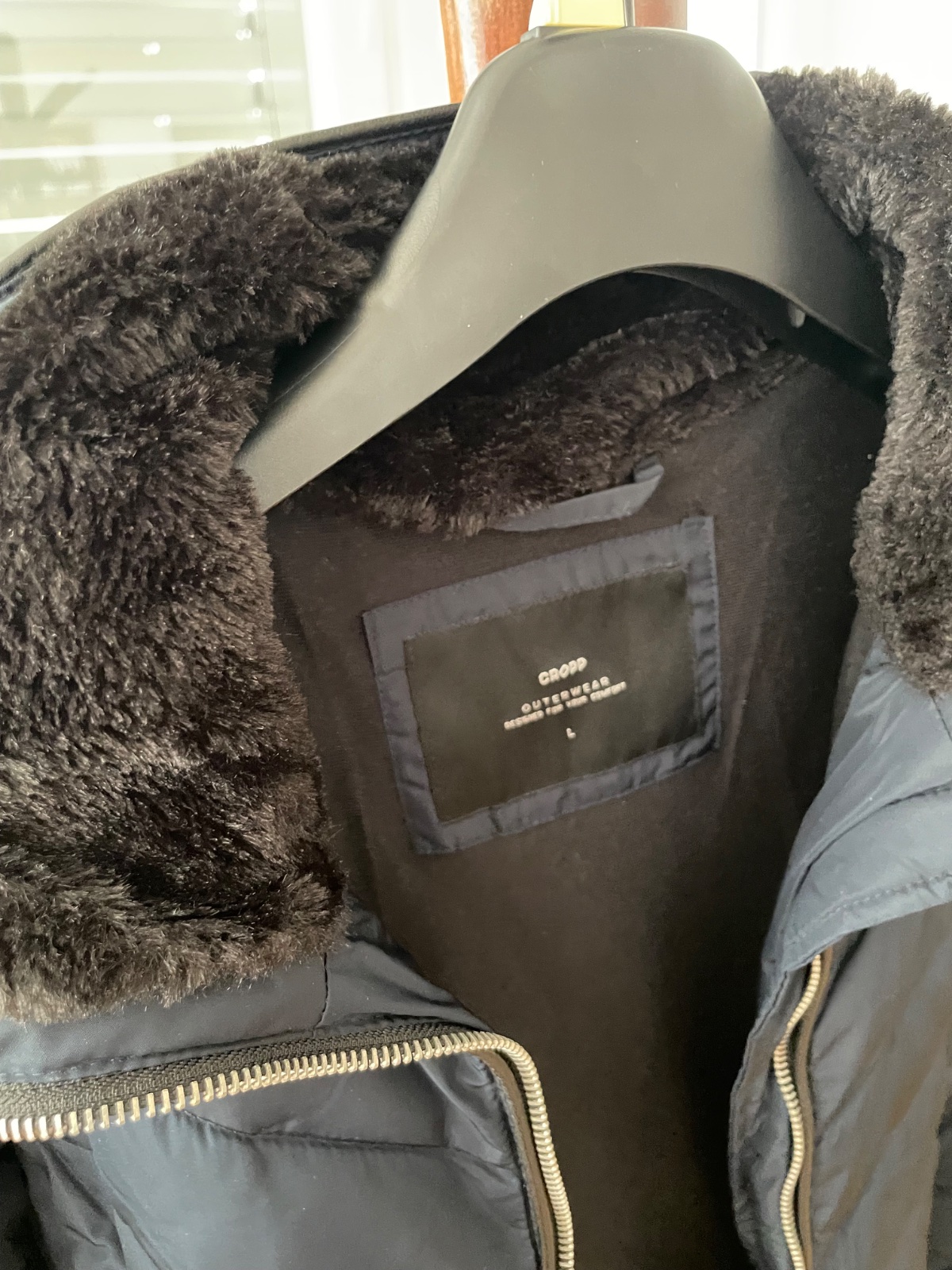 Modrá bunda Esmara velk. 40/42. Dlhá bunda, okolo krku má kožušinku, čo je super. Má odnímateľnú kapucňu. Dlžka 86 cm, pás šírka 2 x 49 cm, dá sa v páse stiahnuť z vnútra sťahovátkami. Neoľutujete!