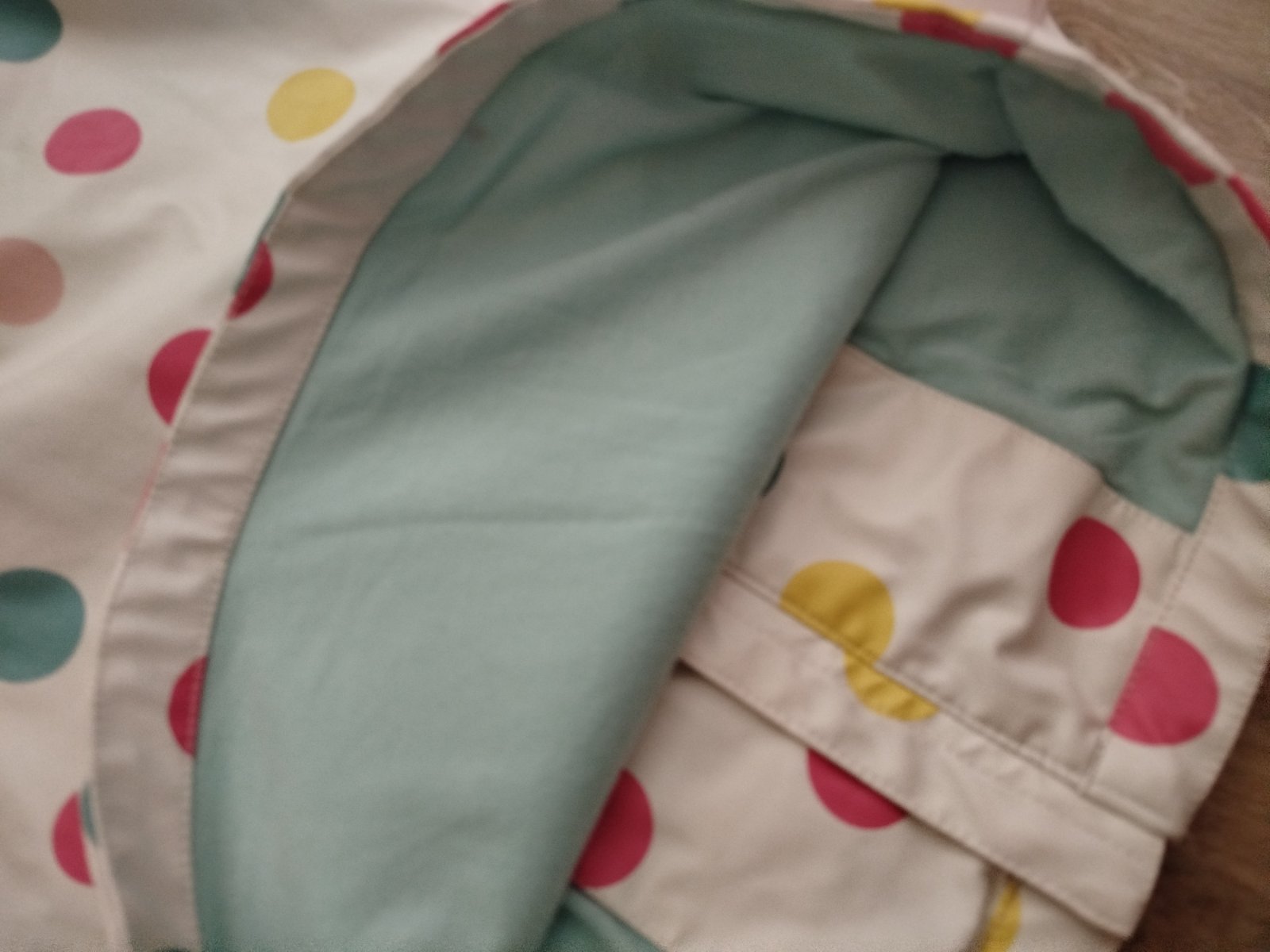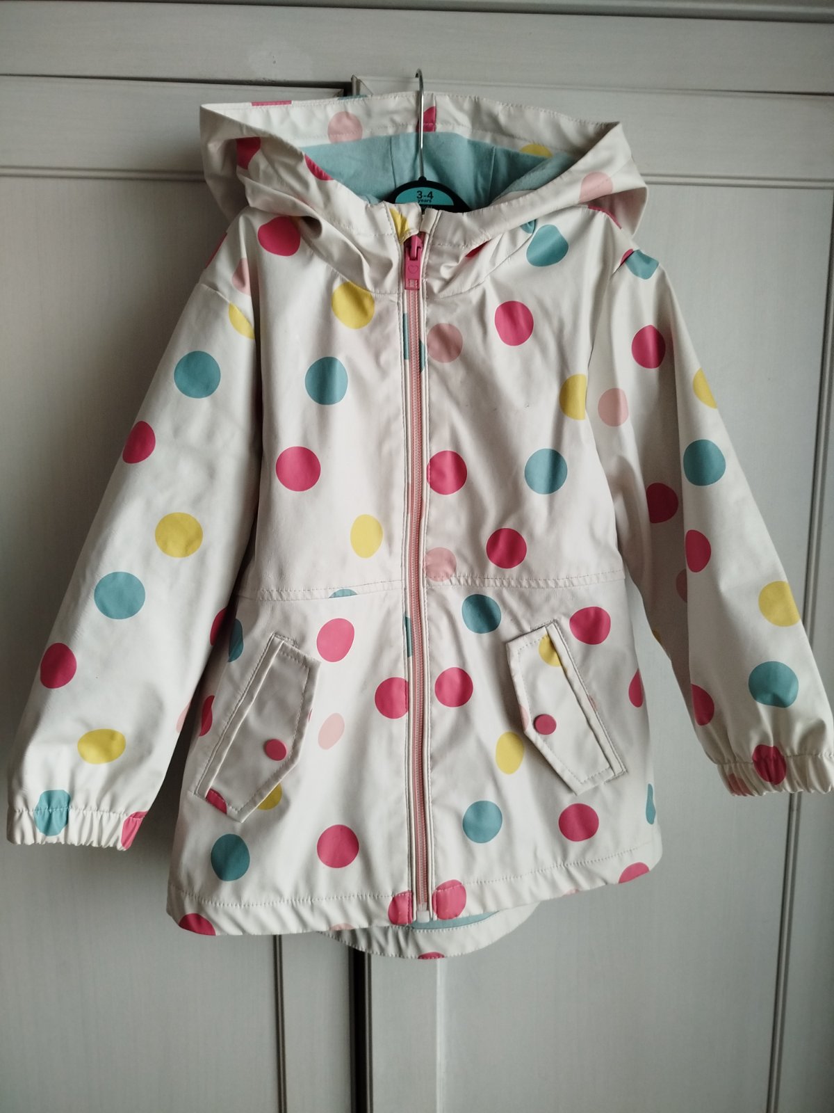 Prechodná, podsita látkou, pogumovana, nositeľa aj ako pršiplášť. Stačí utrieť handričkou a je čista. Výborne sa nosí.