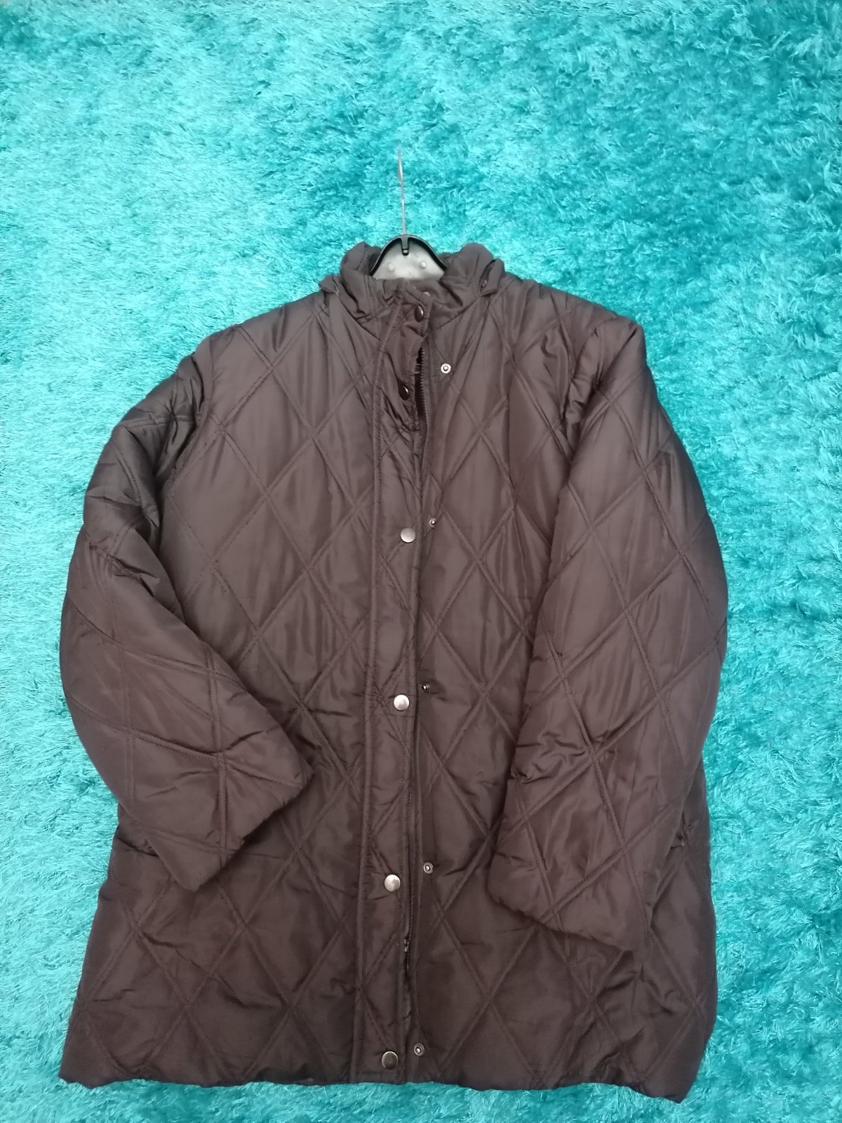 Ponúkam dámsku bundu tmavo hnedej farby. veľ. od 46 do 50. Sirka cez prsia do 130cm. Zateplena kožušinkou. Cena plus pošta.