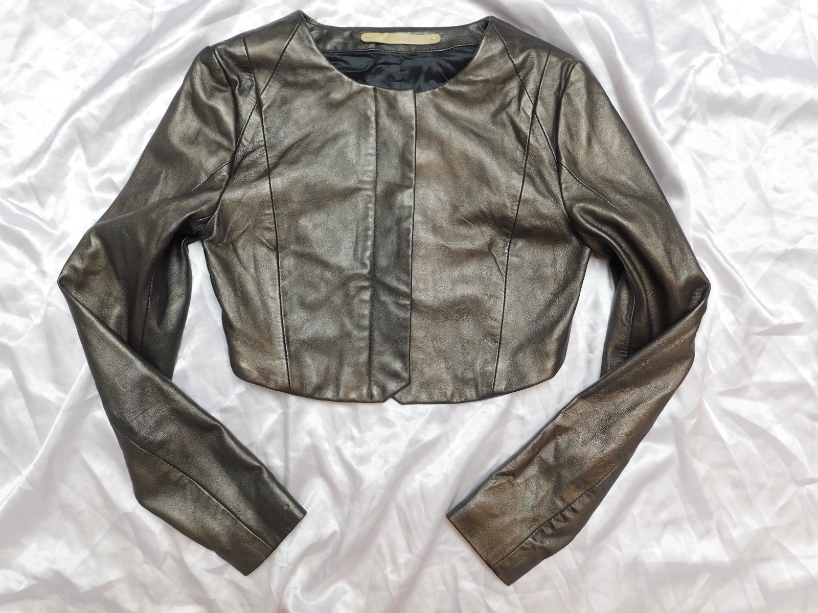WHYRED Damska luxusna kožena bunda,olivovej farby,extra jemna koža,zapinanie na cvoky.100%JAHŇACIA KOŽA.top stav ,ako nova.PC 650€. sof