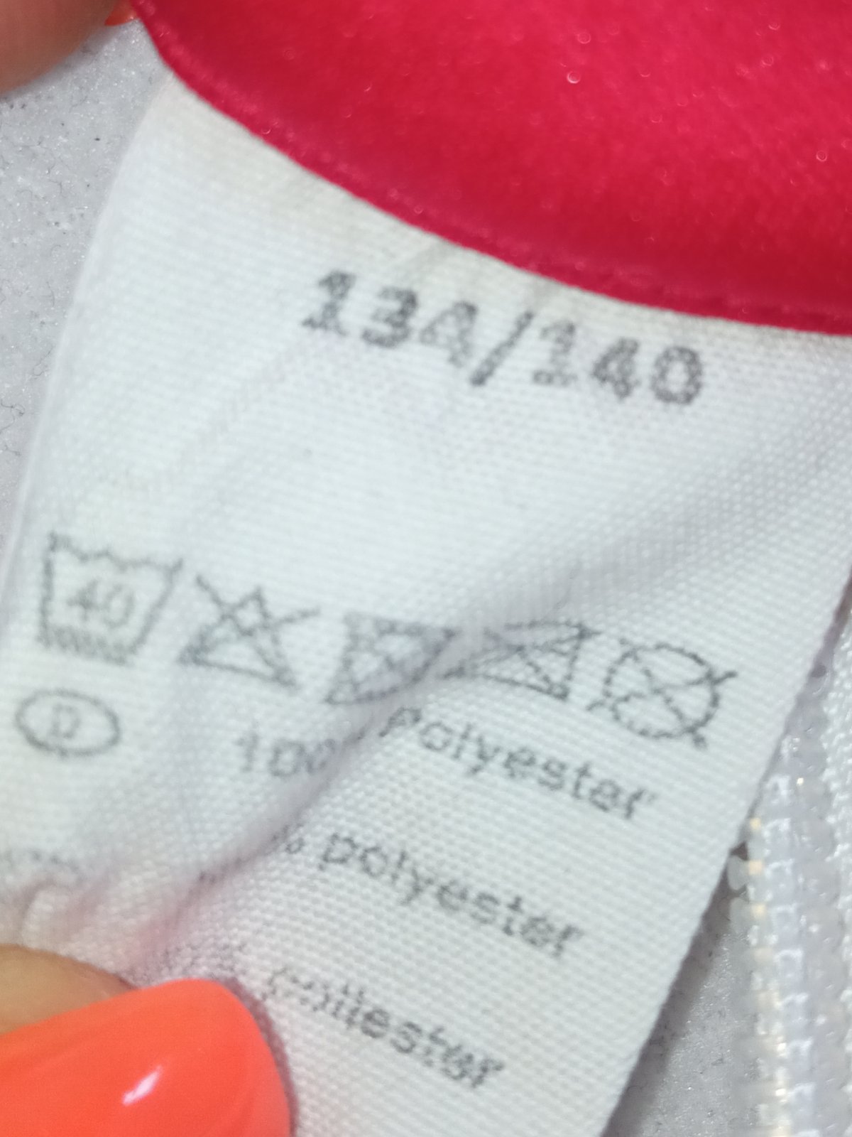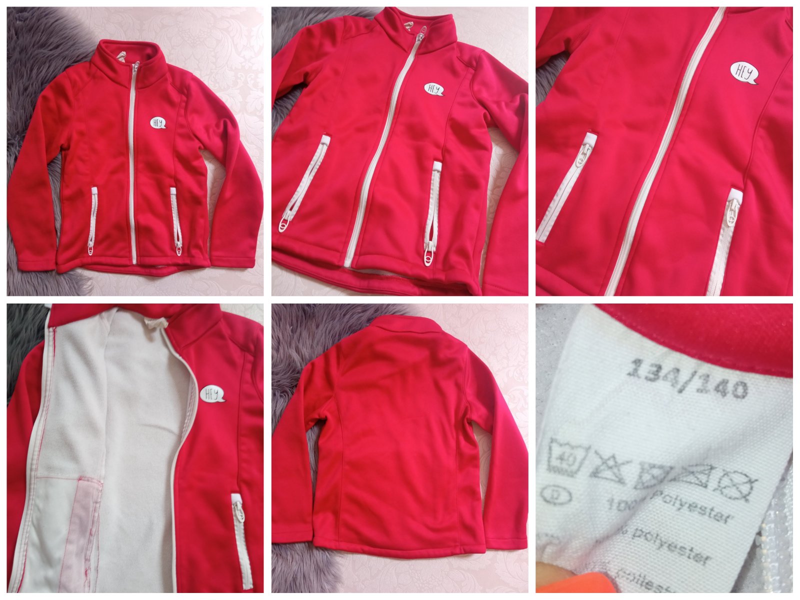 Dievčenský červený kabát, športový typ, zapínanie na zips, dve bočné vrecká na zips, tenký, materiál 100%polyester.