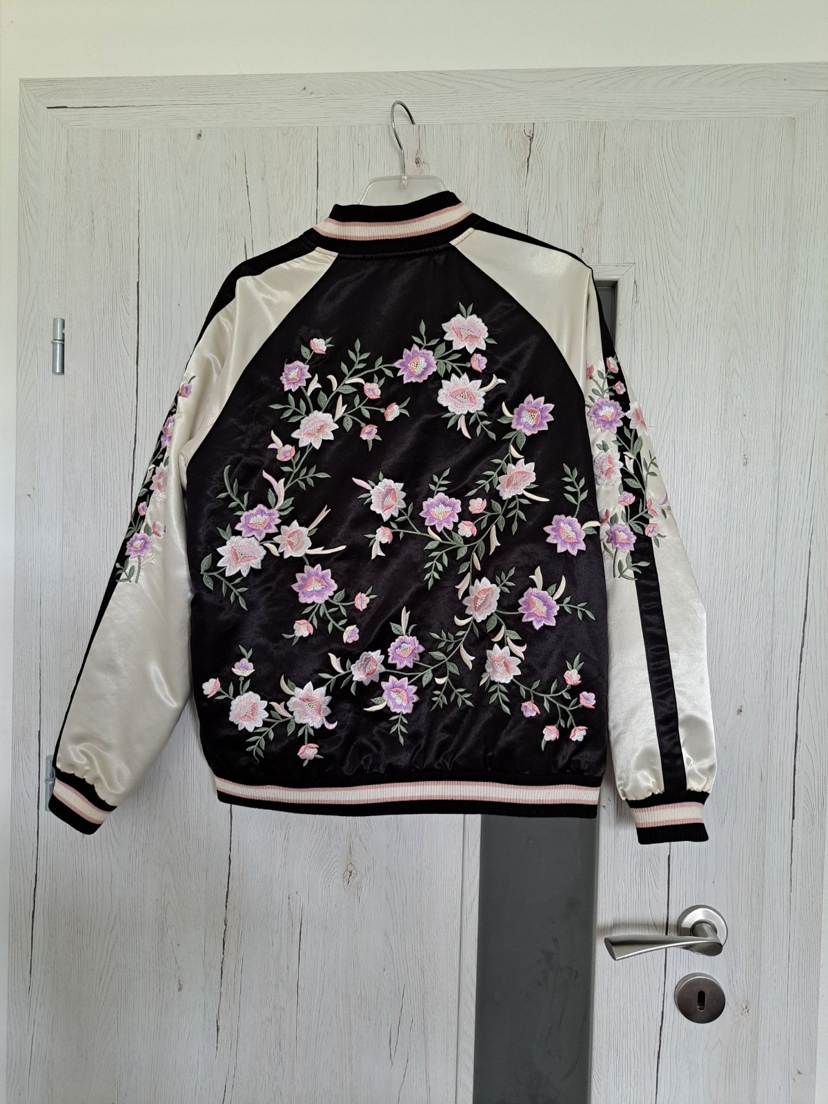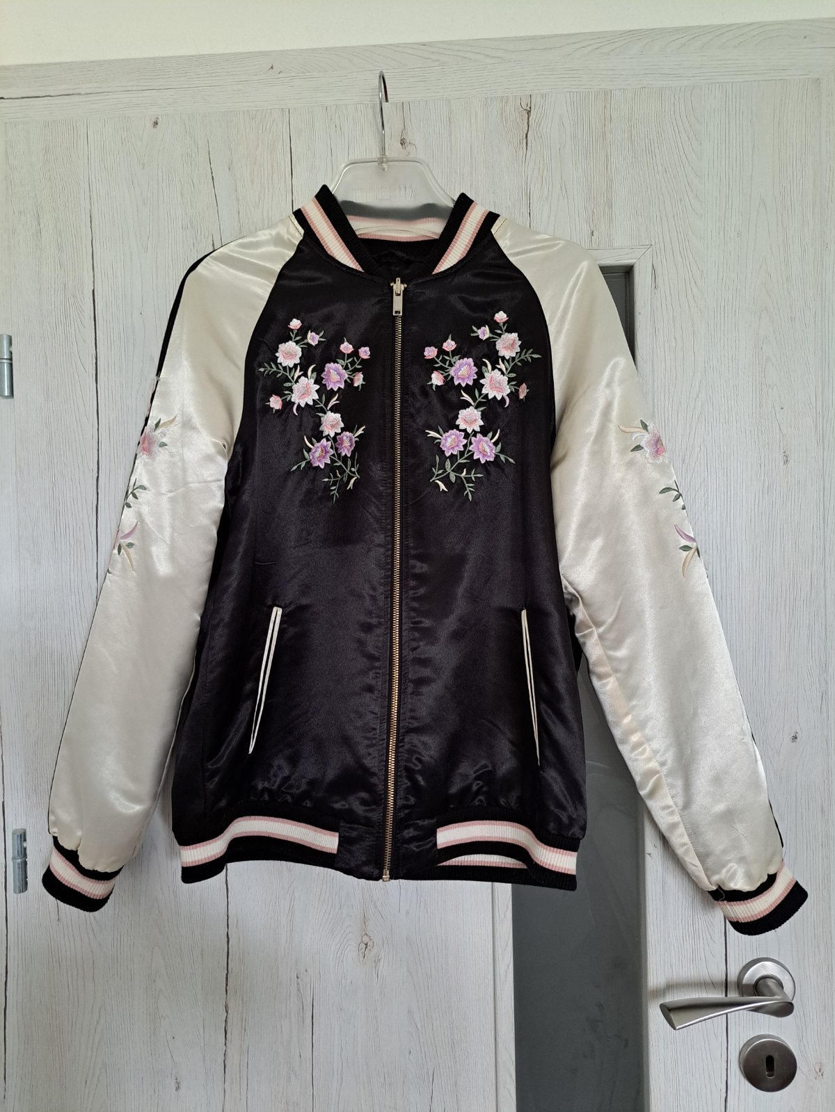 Predám obojstrannú bomberu s detailom vyšívaných kvetov. V dobrom stave bez poškodení a známok nosenia.
