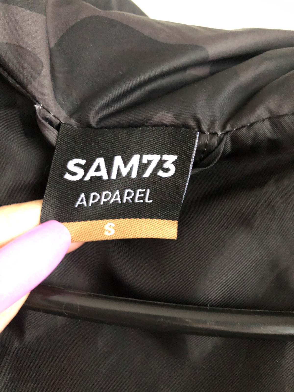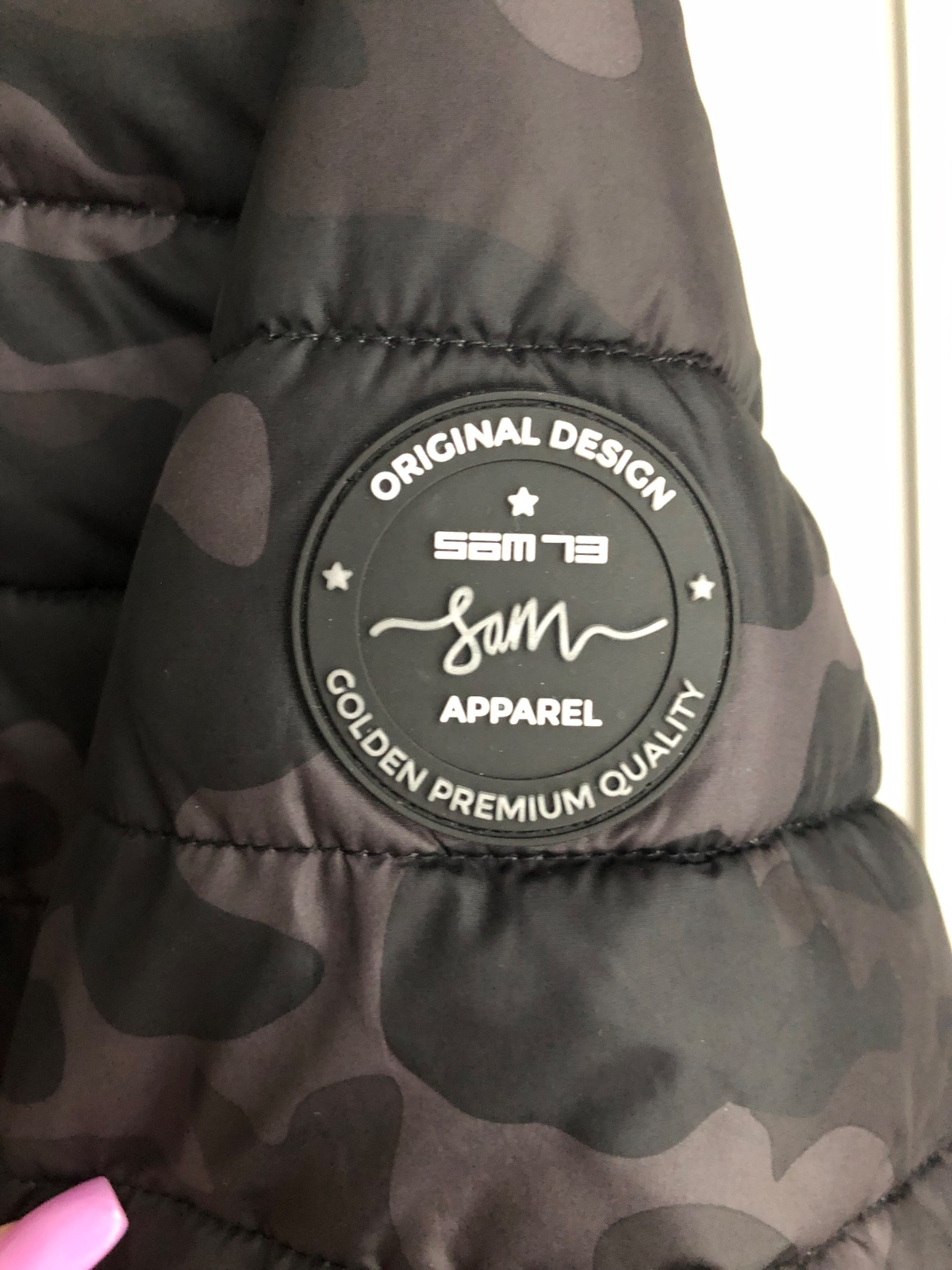 Bunda značky SAM, veľmi teplá, nie je hrubá , farba taka sivo modrá