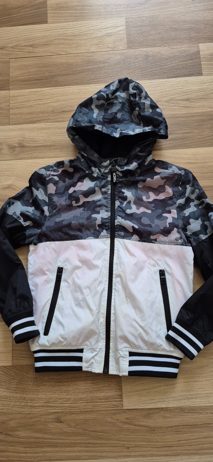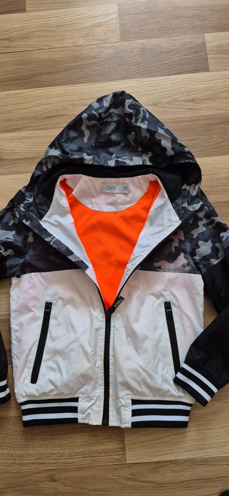 Prechodná šušťáková bunda, veľkosť na 6-7 rokov, kapucňa má šilt. Bundička je vo veľmi peknom nosenom stave