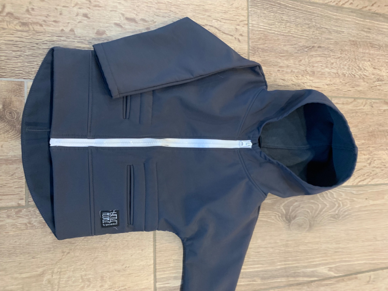 Nosené, no vo veľmi dobrom stave. Pre mňa topka z vecí pre deti. Dokonalá prechodná softshellka. Rastúca, ponosíte minimálne cez 2 veľkosti, kúpená na Littlepeople.sk za 53,20€, je to v podstate nezničiteľný kúsok, farba sa dobre kombinuje, predĺžený zadný diel pekne kryje kríže.Vždy k tomu nosíme nohavice od Vimby (kuk bazár) a gumáky En fant zateplené (tiež v ponuke). Dieťa je aj v totálne sychravom počasí vždy v teple, suchu a zdravé