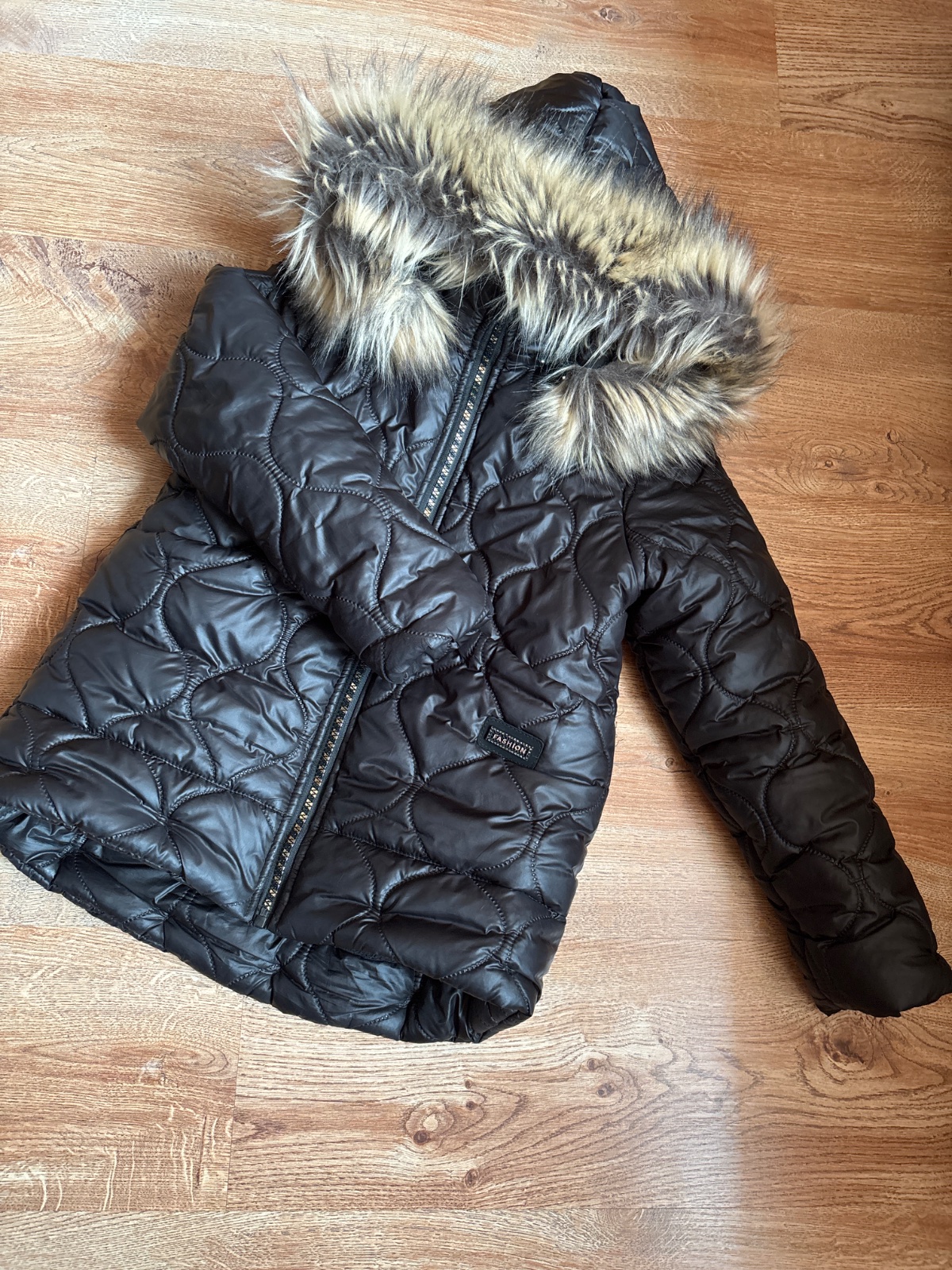 Dievčenská teplá zimná bundička na 10 rokov.Zadný diel bundičky je predĺžený .Cena 8 eur+poštovné.