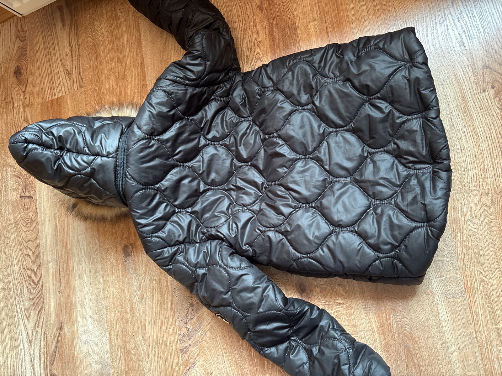 Predám v top stave kvalitnú prešívanú zimnú bundu, vnútri zateplená kožušinkou. Dĺžka bundy 79 cm, dĺžka rukáva od ramena 53 cm, šírka cez hrudník 2 x 44 cm.