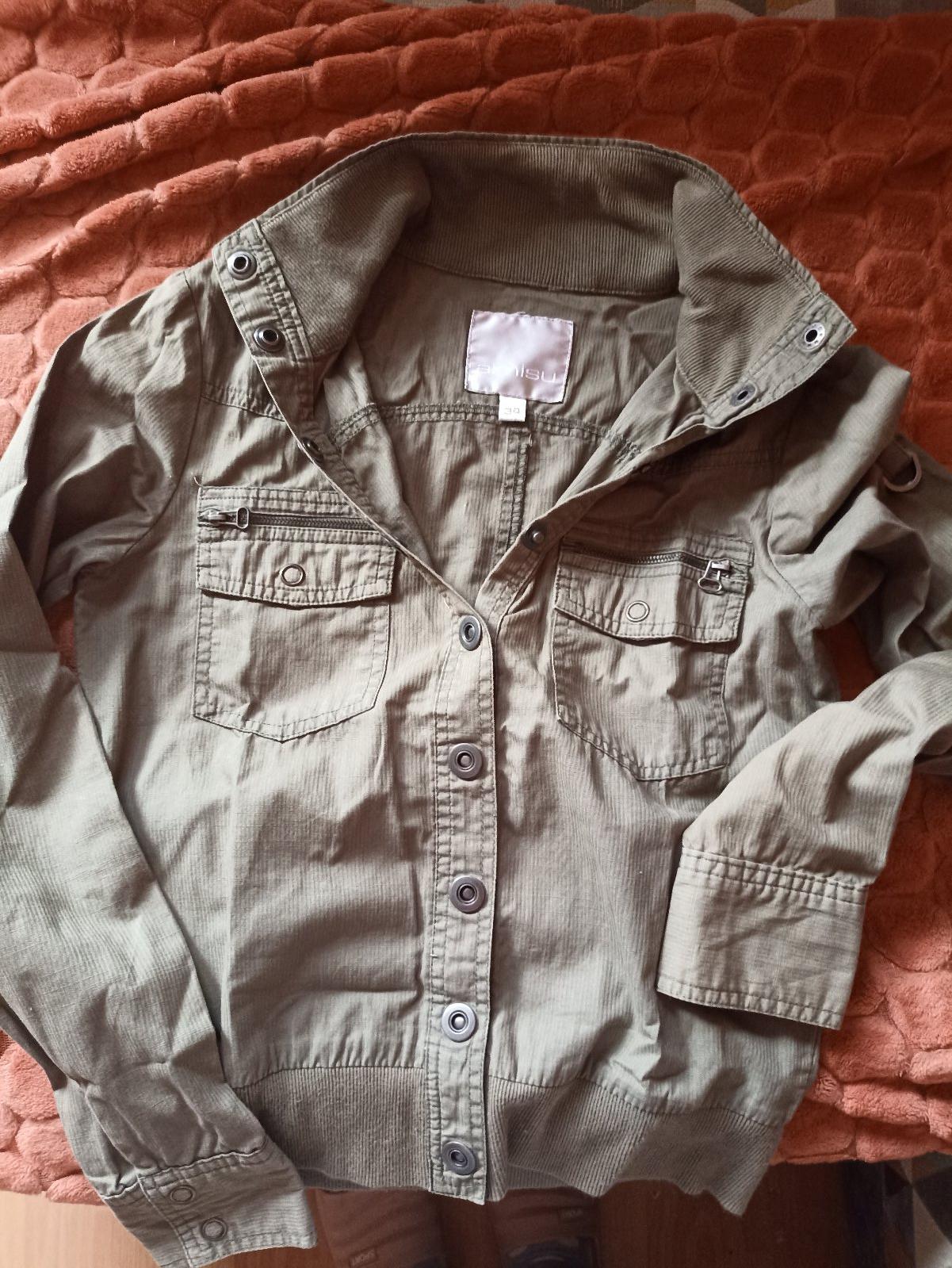 Predám dievčenskú bundičku jar-leto, zapínanie na cvoky so stojačikom, krátky strih, pre chudšie dievčatko, 2 náprsné vrecká na cvoky, veľ. je označená 34, ale je to menší strih, my sme ju nosili ako 158/164. cena 6,-€ spolu s poštovným