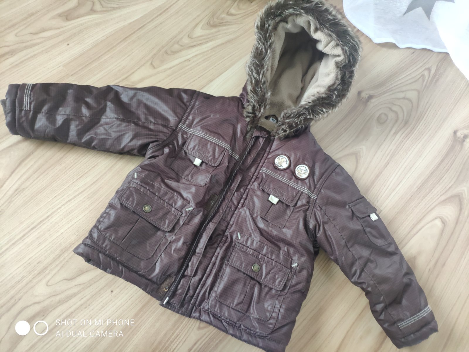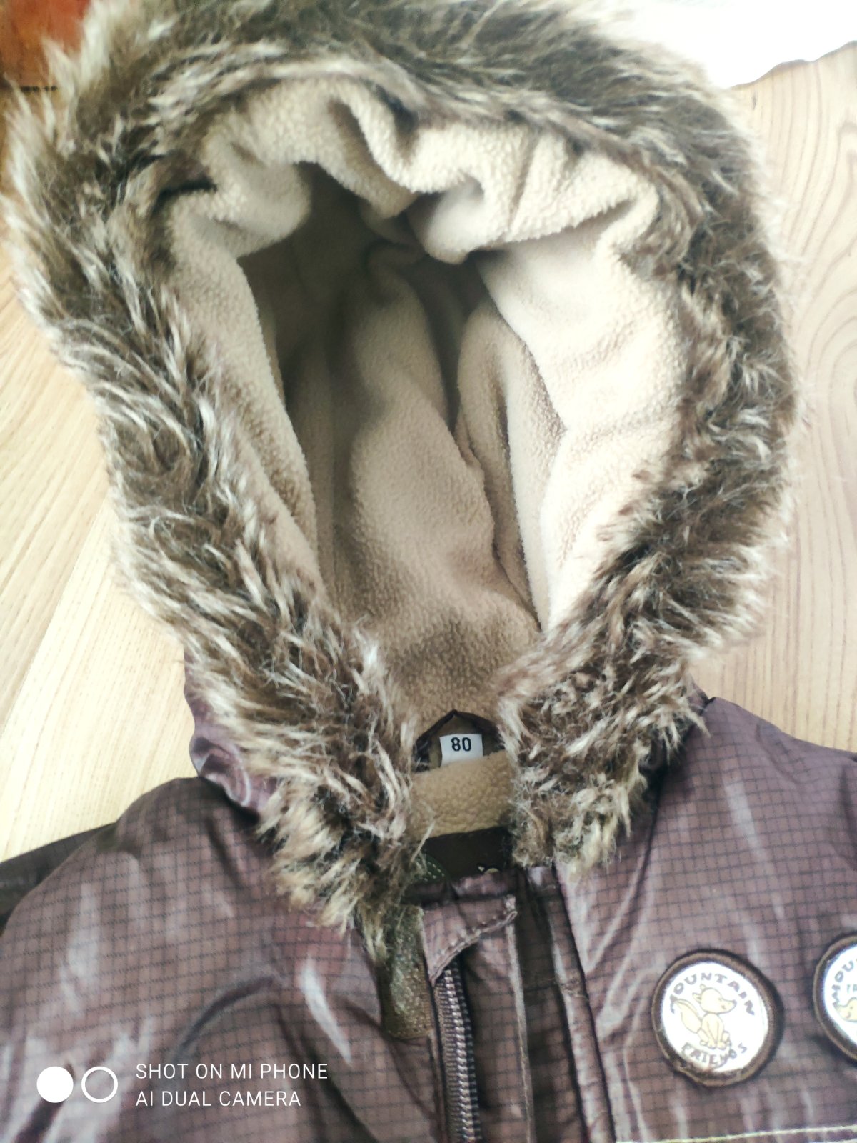 tmavá hnedá farba, zapínanie na zips, vnútro flís, super stav veľkosť: 12 mesiacov materiál: polyester, bavlna výrobca: Tissaia rozmery: dĺžka od pleca dole 37 cm, šírka pod pazuchou 34 x 2 cm, ruk...
