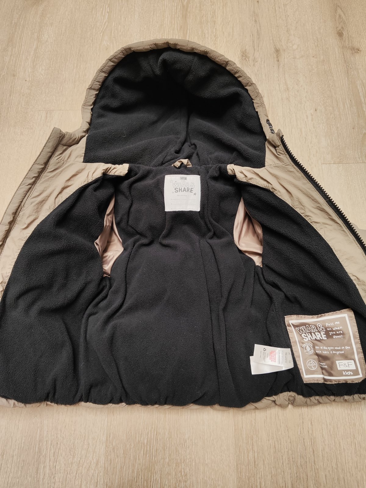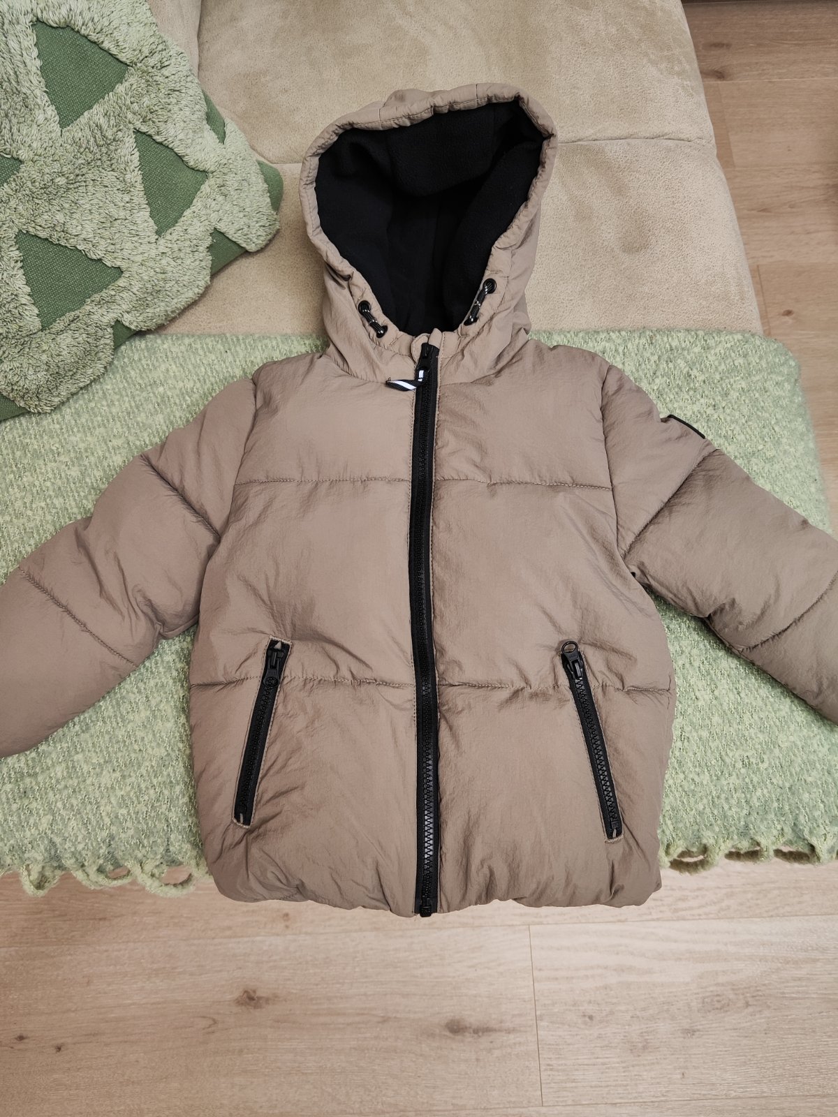 Posuniem krásnu, málo nosenú bundu. Veľkosť písaná 4-5 rokov( 110), ale príde mi trochu menšia ... Žiadne poškodenia, krásna farba