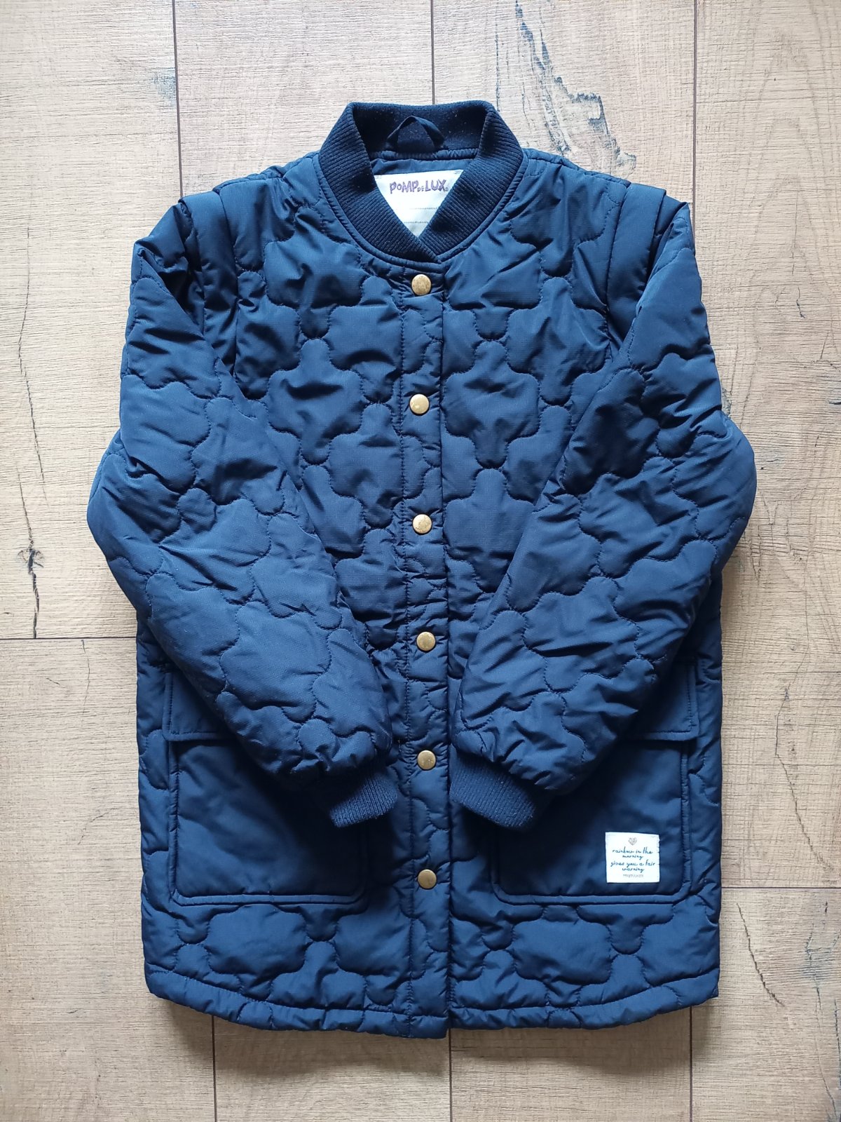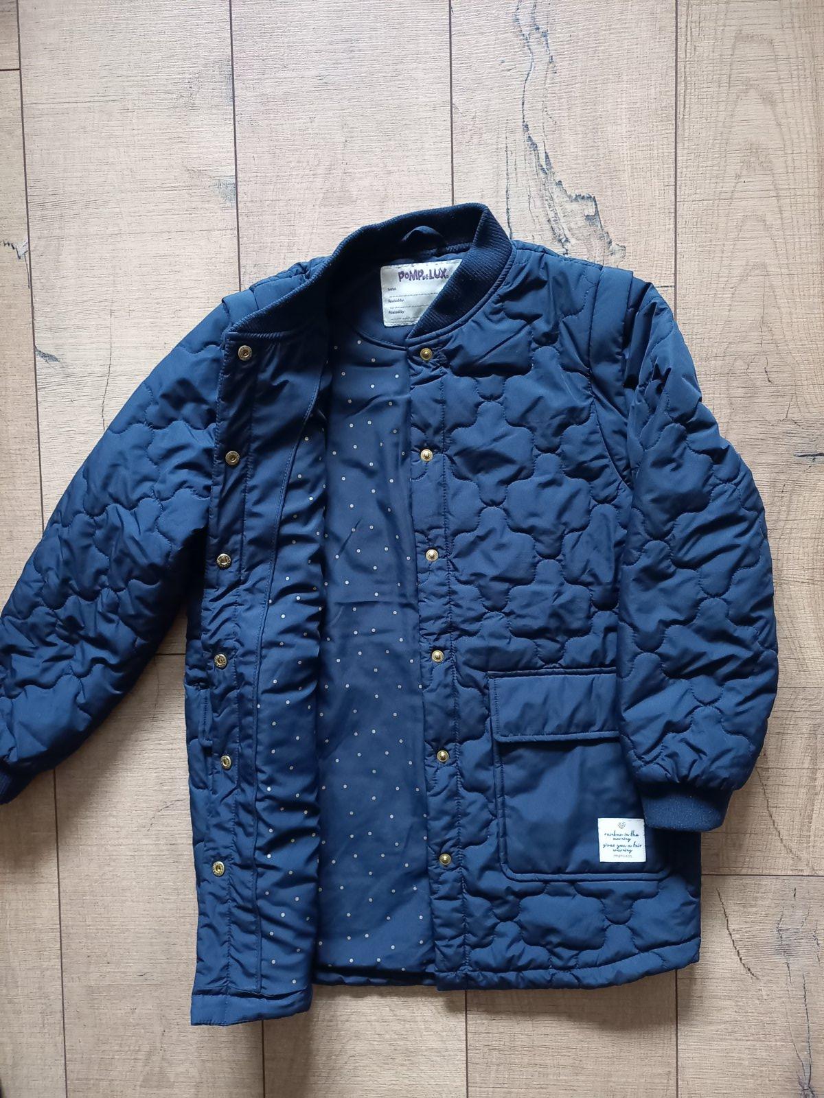 Velmi prakticka prechodna bunda zn. Pompdelux, dvojvelkost 134/140. Rukavy sa daju odopnut a vznikne vesta. Nosena jesnu sezonu, velmi pekny stav.