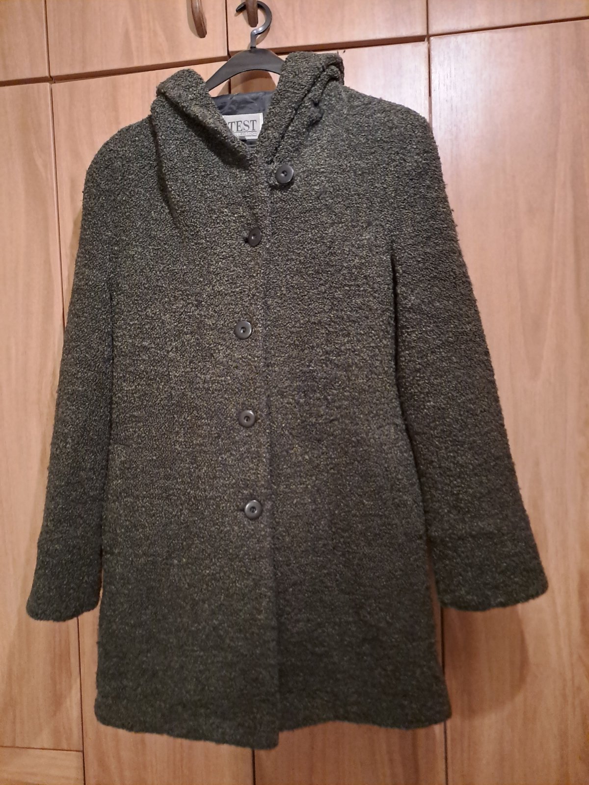 Dámsky kabát. Veľkosť 38. Značka TEST COLLECTION. Farba olivová zelená.