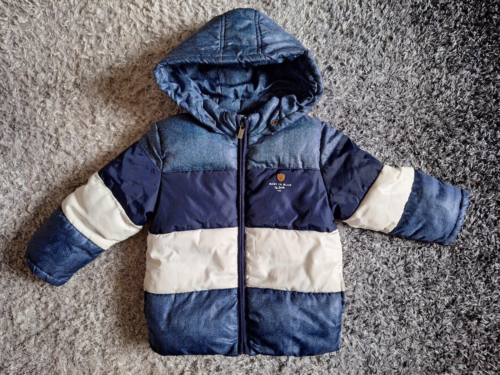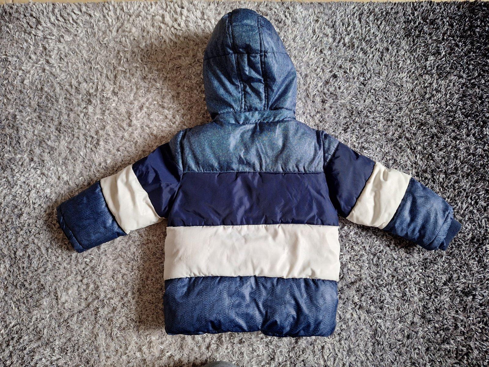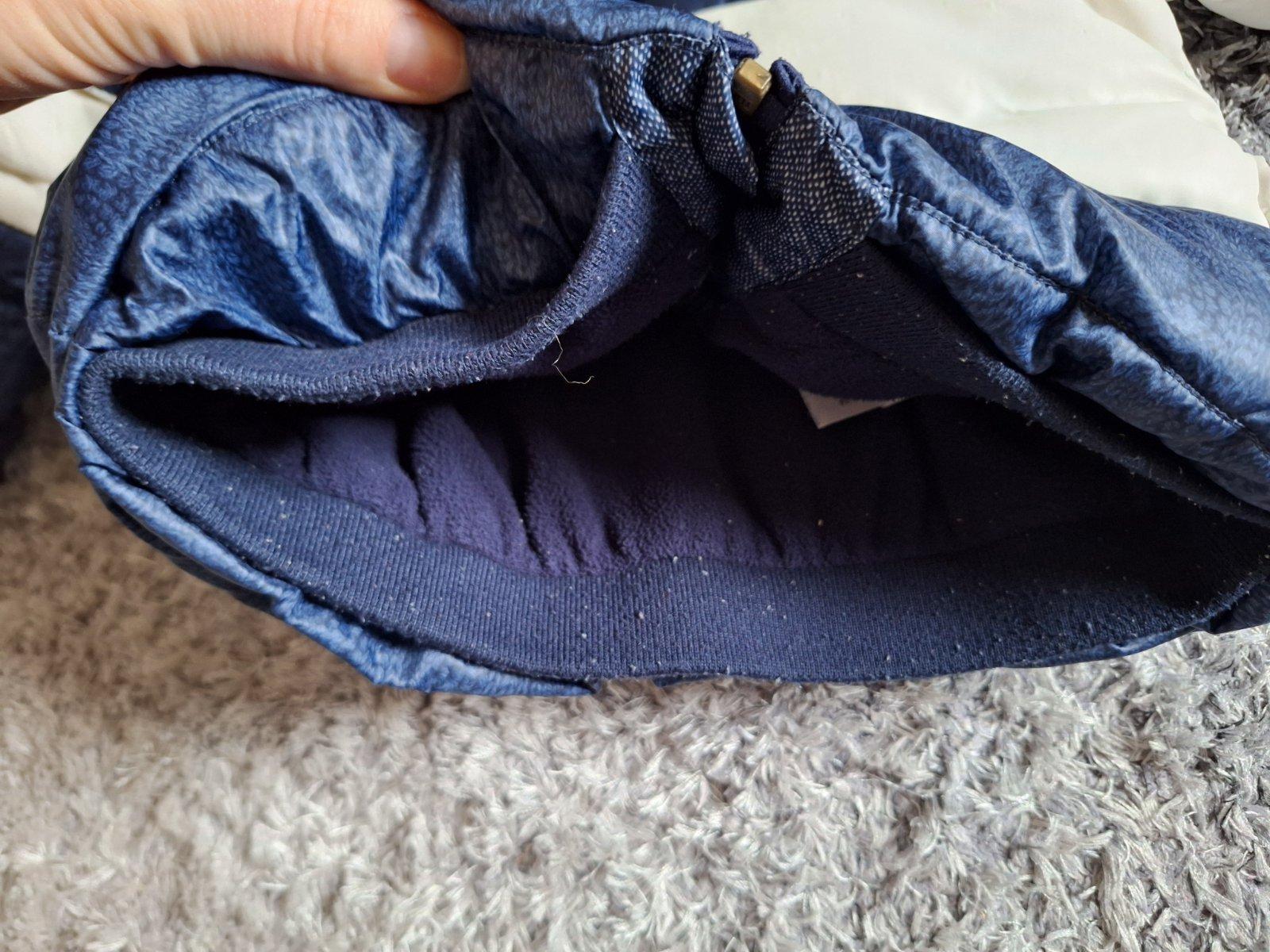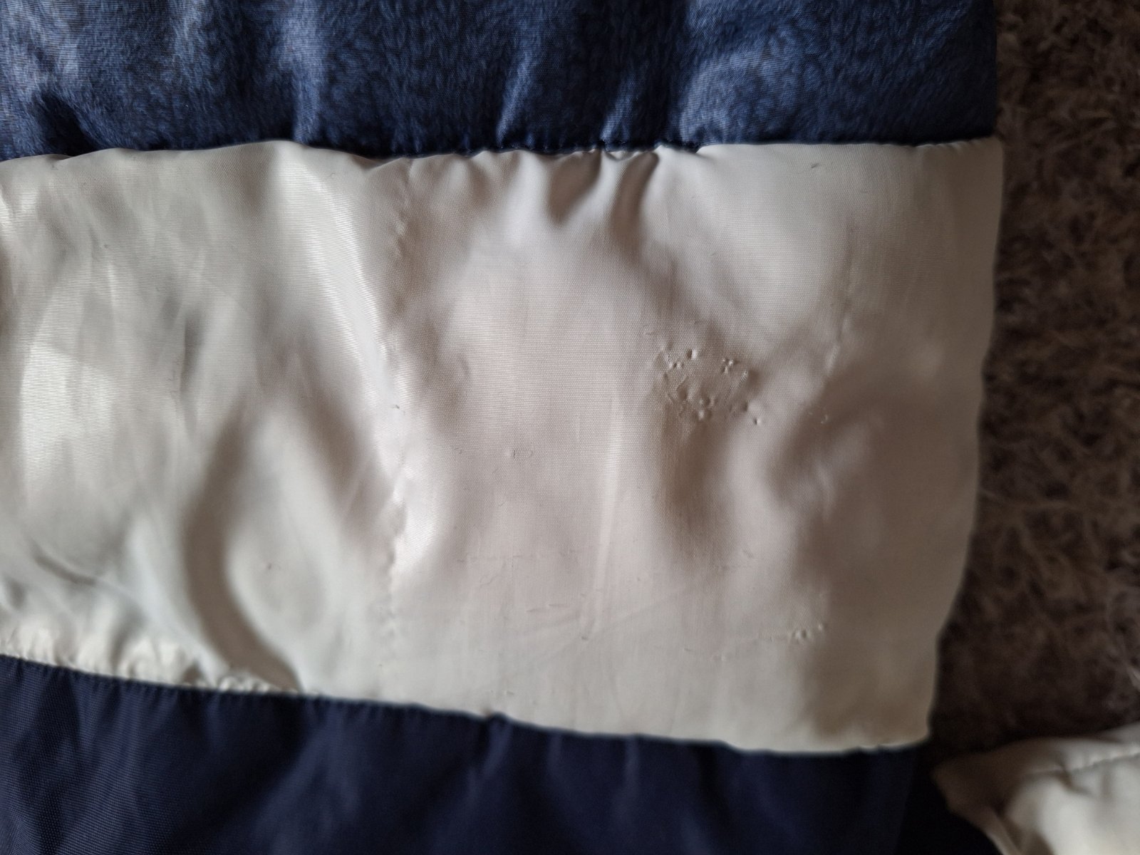 Teplá, hrubá, ale ľahká vetrovka už skôr na donosenie (viď foto nedostatkov), biela farba je už trochu zašlá.
