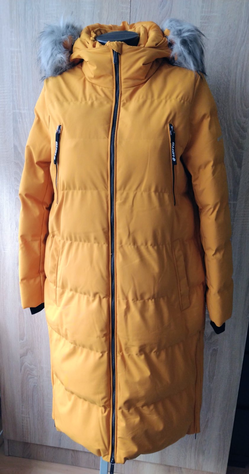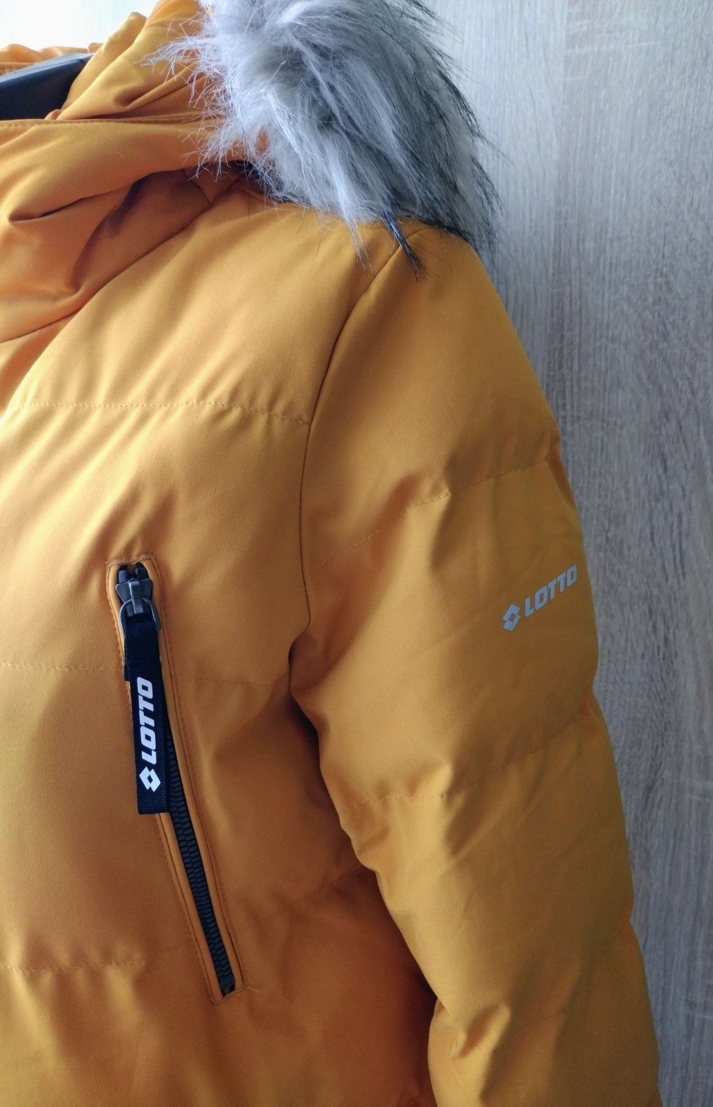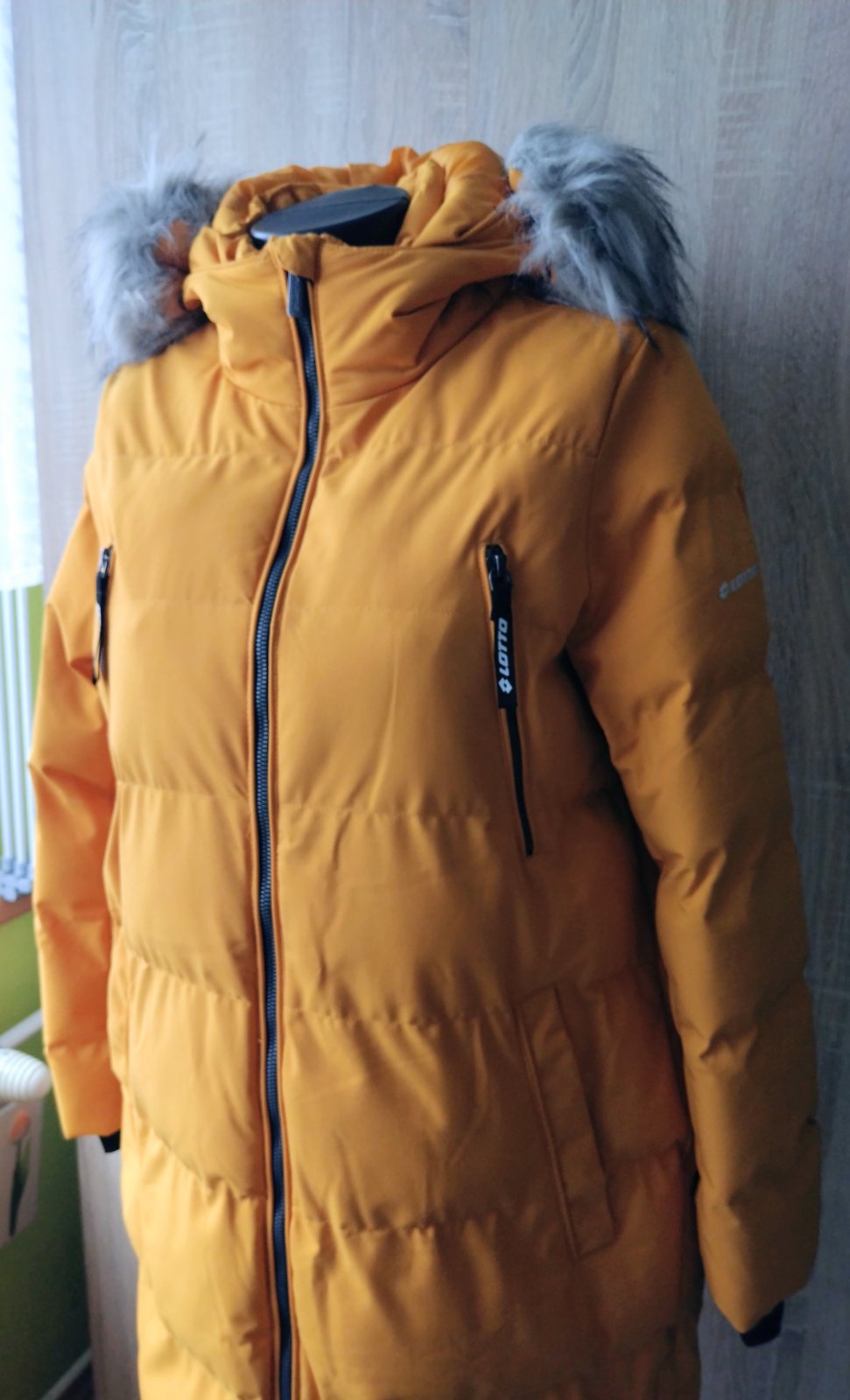 Dámsky prešívaný kabát, značka Lotto, veľkosť XS, vnútorné vrecko, lem kapucne z umelej kožušiny s možnosťou odopnutia, hrejivá výplň, predĺžený strih, ktorý kryje chrbát. Dve predné vrecká, dve vrecká na hrudi na zips, vnútorné vrecko na zips.