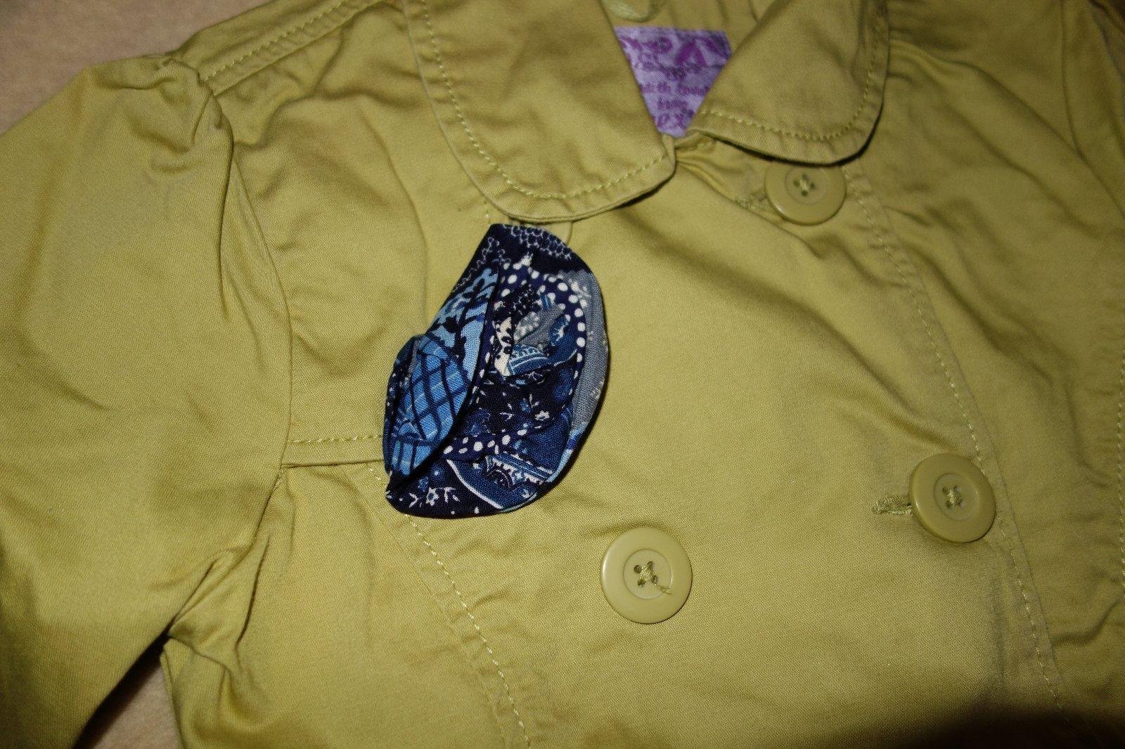 Krasny kabatik s kvetinkou vo velmi dobrom stave- ma par fliacikov- ako keby vyblednutia, ale takmer to nevidno. Je tenky, nie je ani podsity.
