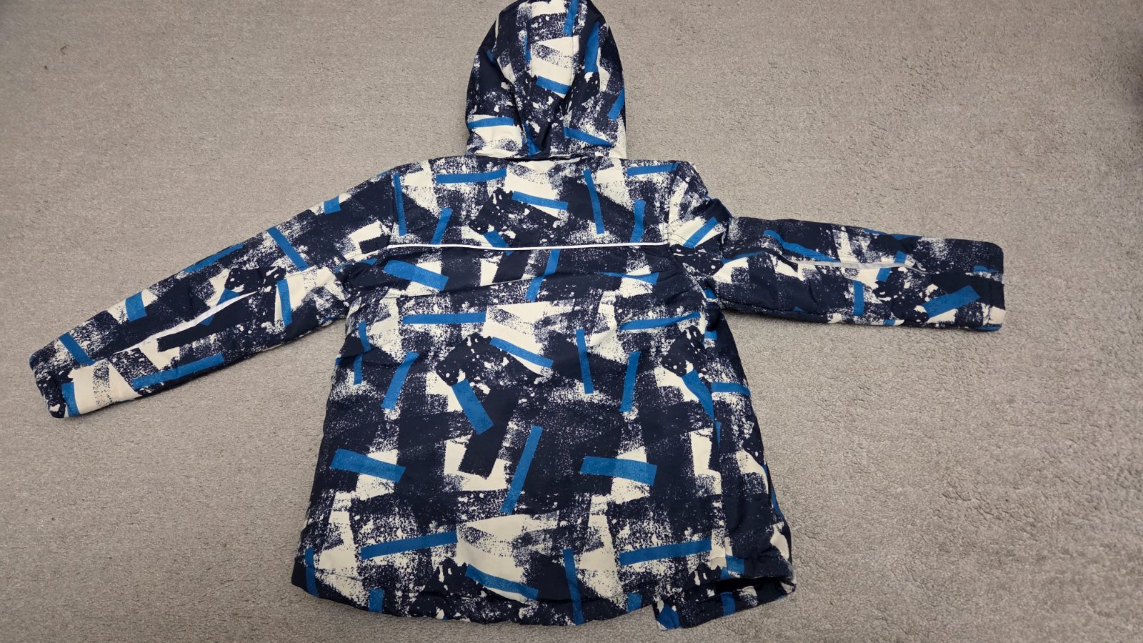 Ponúkam na predaj peknú vetrovku pre chlapca, výborný stav, neosuchana, nevyblednuta, len na jednom rukáve čiarka, nejde to vyprať, neviem čím to syn spravil. Cena 12 eur.