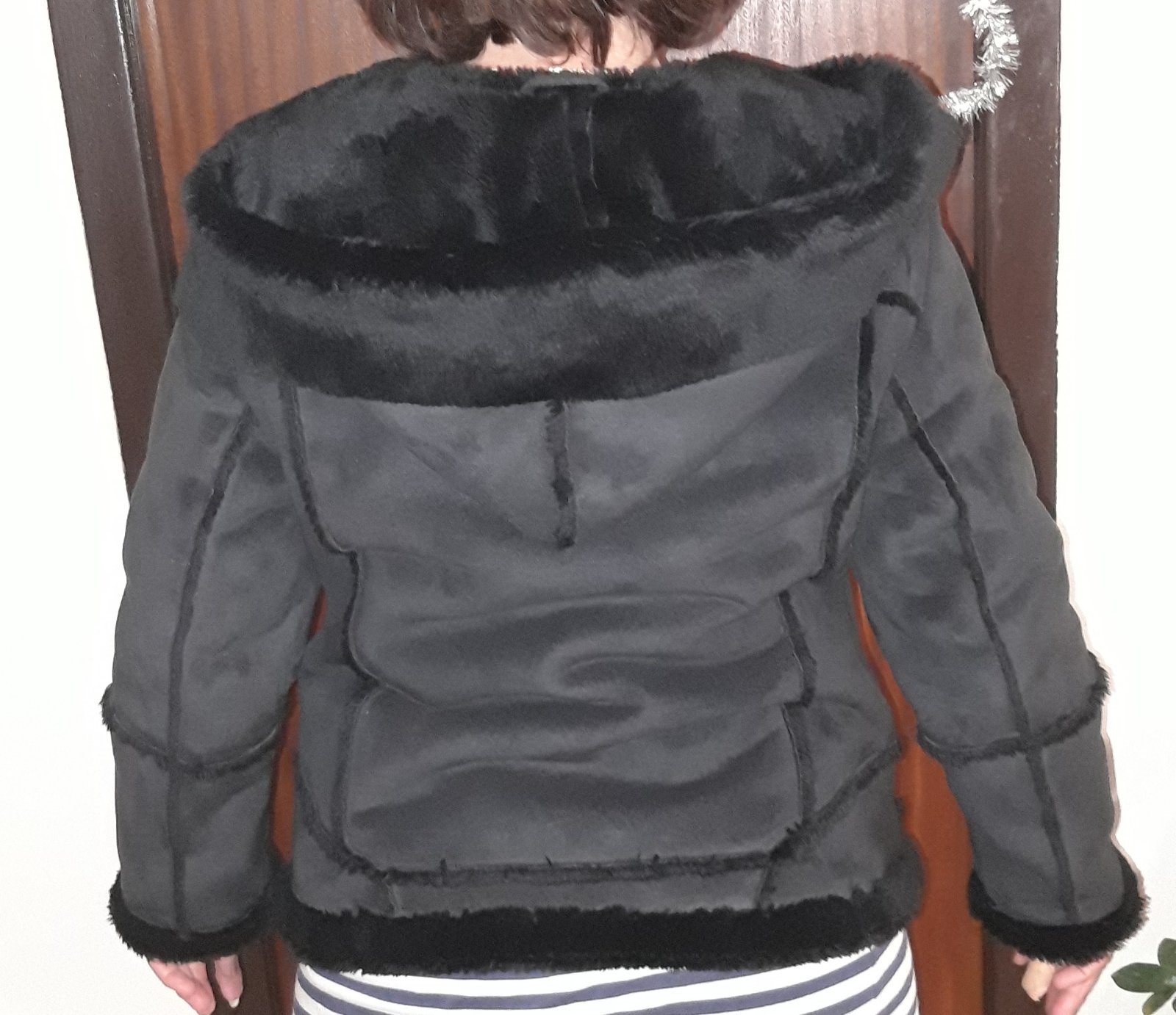 Teplucky kratky kozuscek velkost 14 alebo 42 ,dlhy je bez kapucne 67cm ,rukav od ramena ma 62 cm a cez prsia ma 54x2 ,je velmi teplucky a bez poskodenia