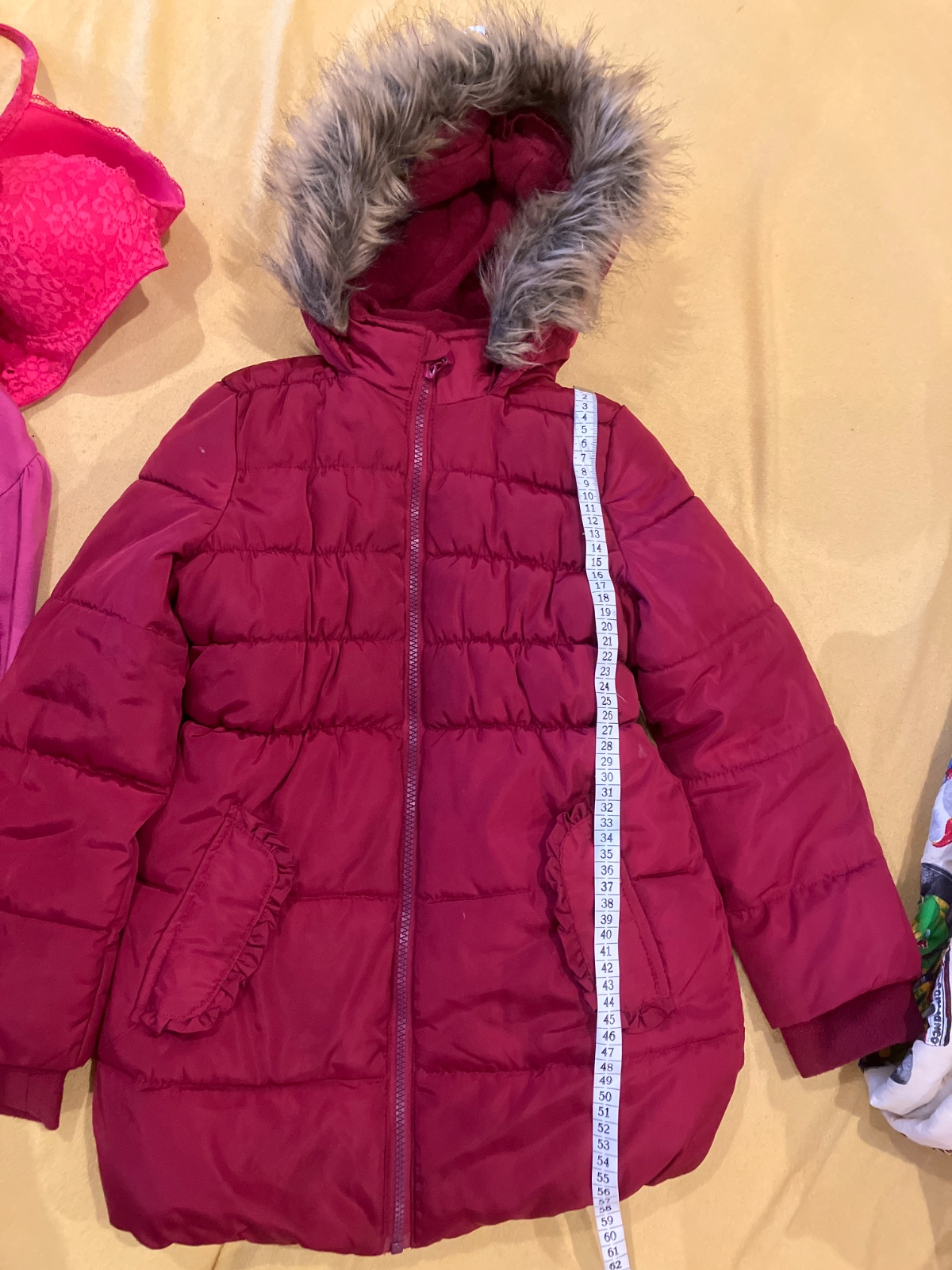 Predám tmavoruzovu teplu zimnú bundu pre štíhle dievčatko. Je predĺžená, v peknom nosenom stave.