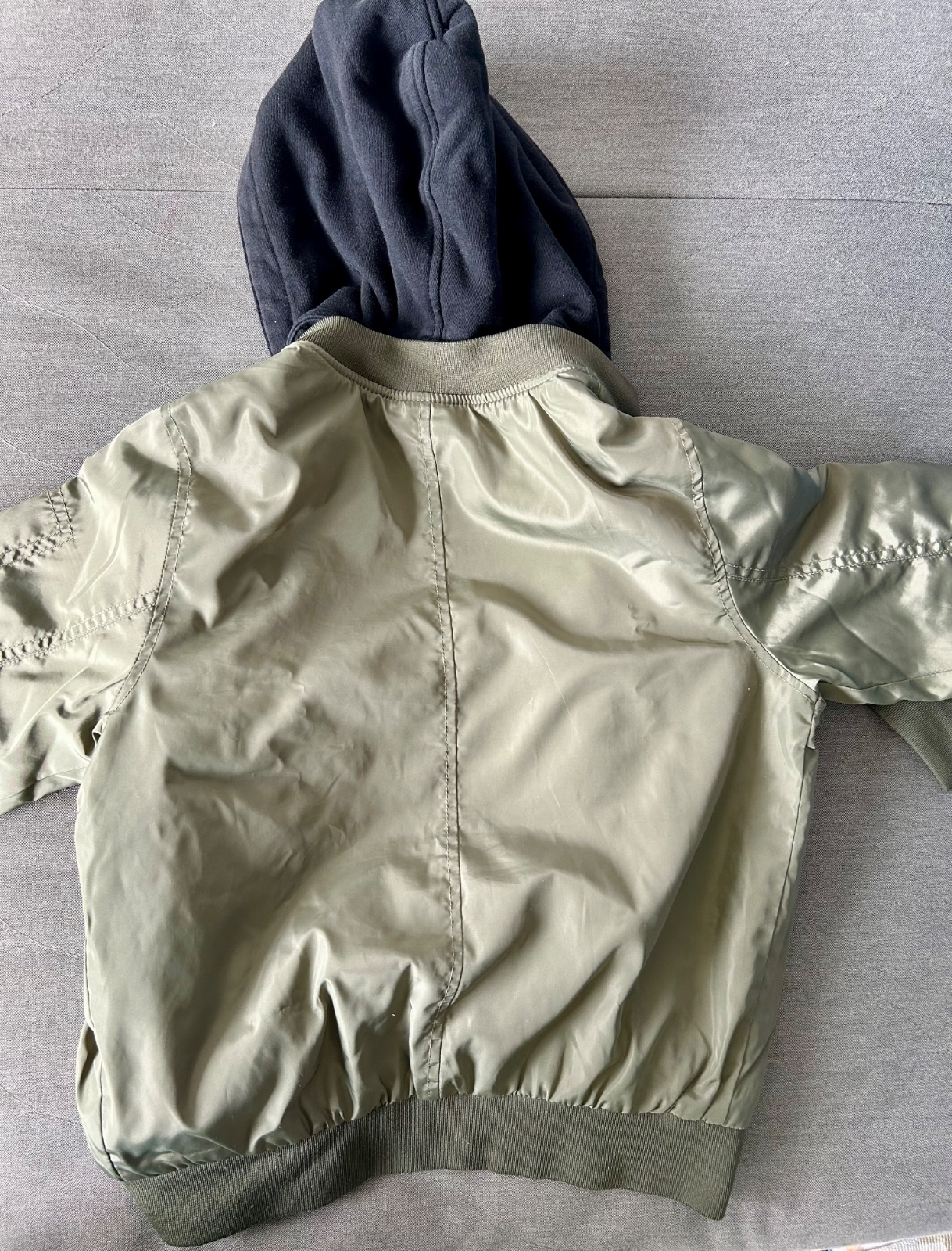 Pekný noseny stav bez poškodenia, zateplena,dĺžka 54 cm, šírka 45 cm a dĺžka rukávov od krku 57 cm,kapucňa sa dá odopnut
