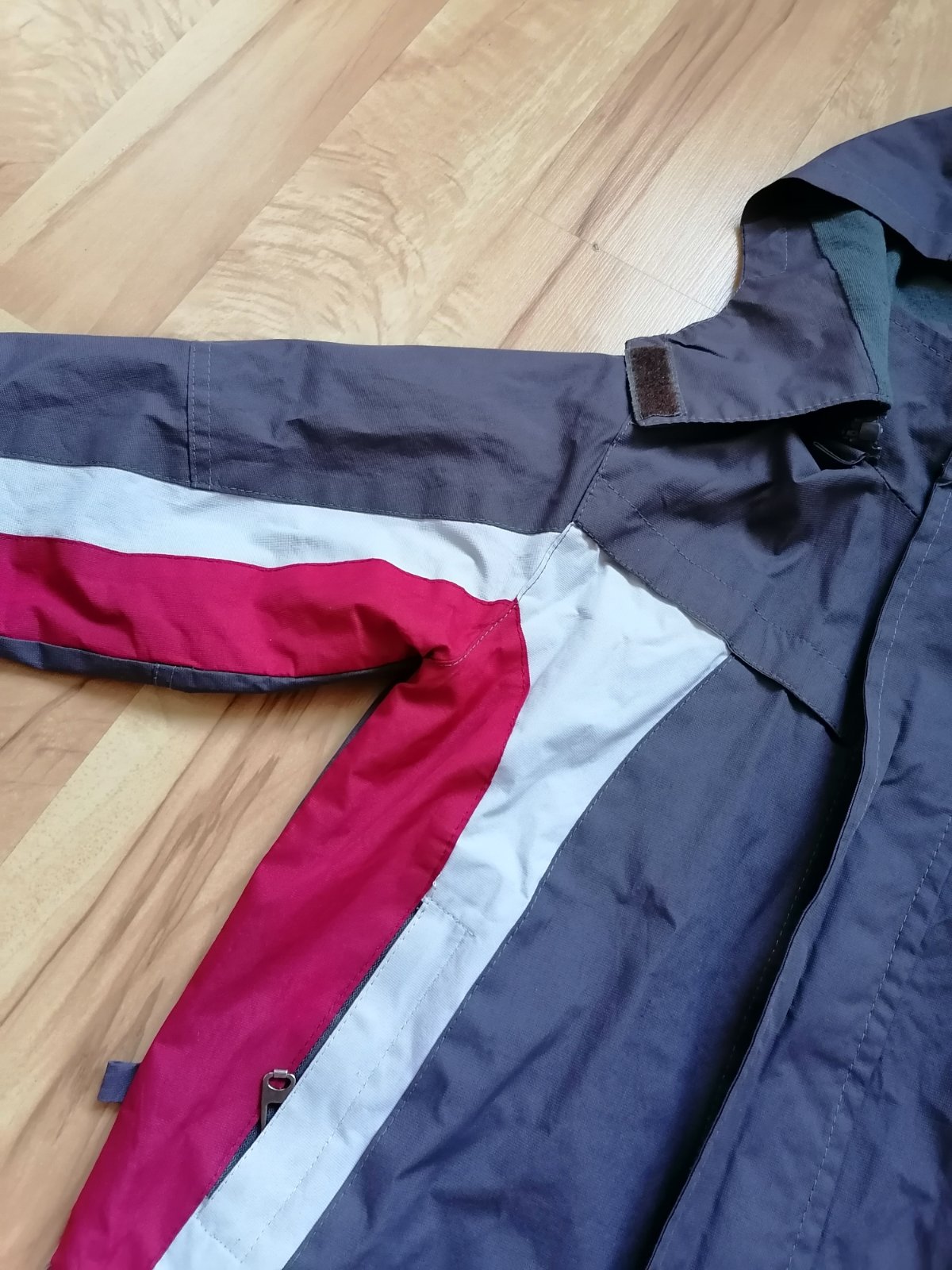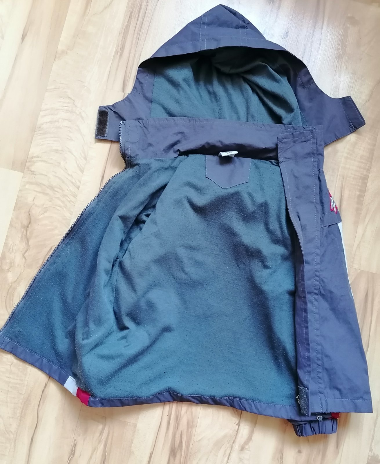 A šnúra je buď vo vnútri alebo vytiahnutá - na spodku vetrovky.