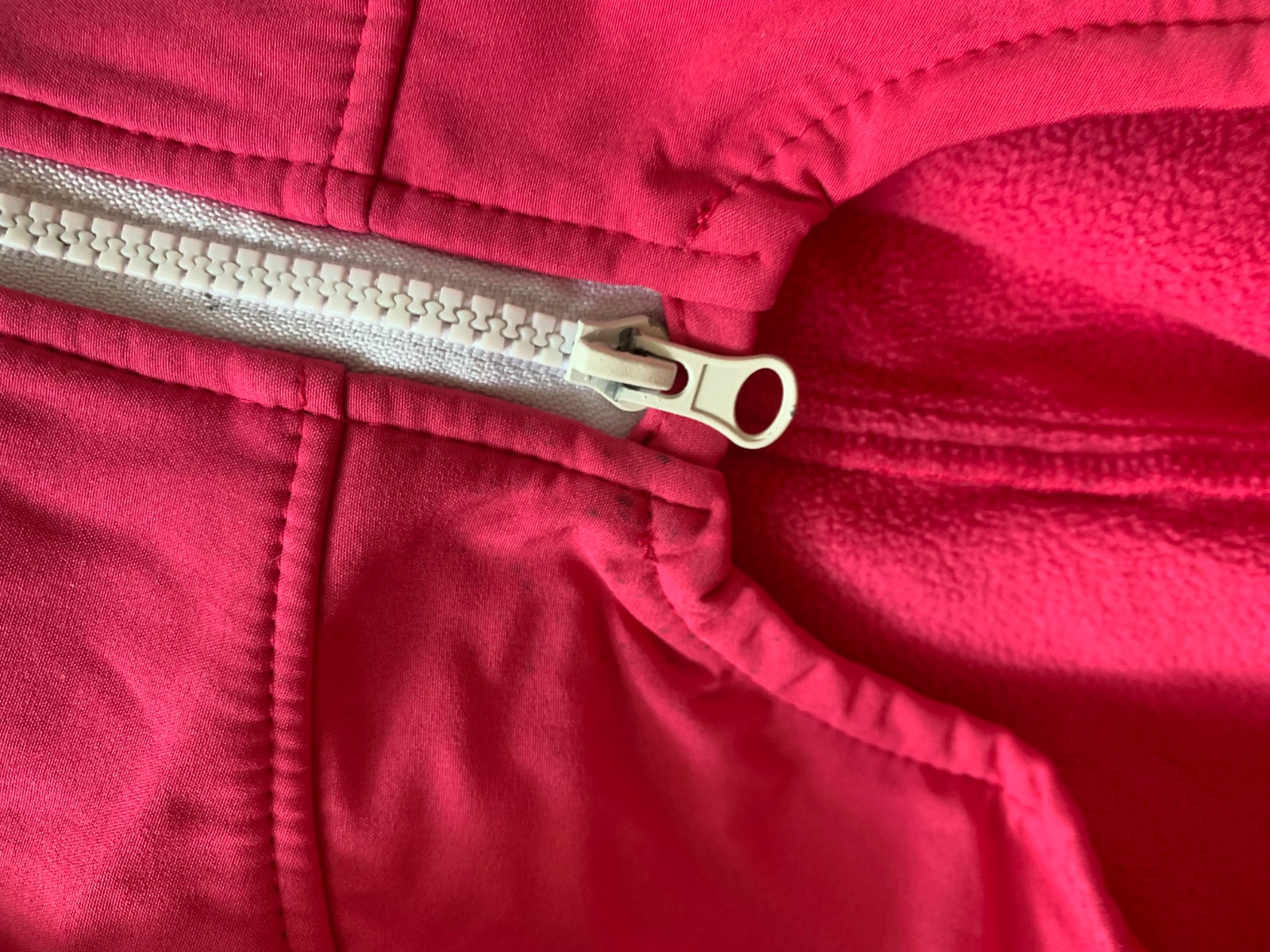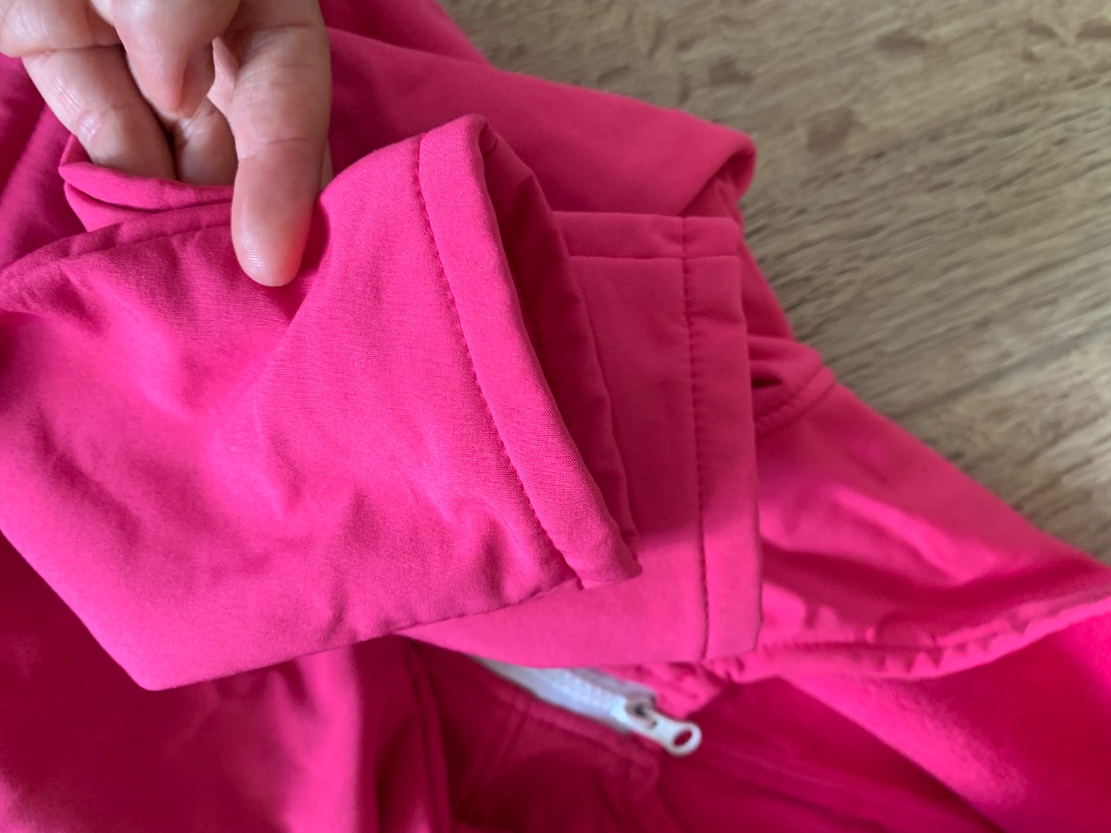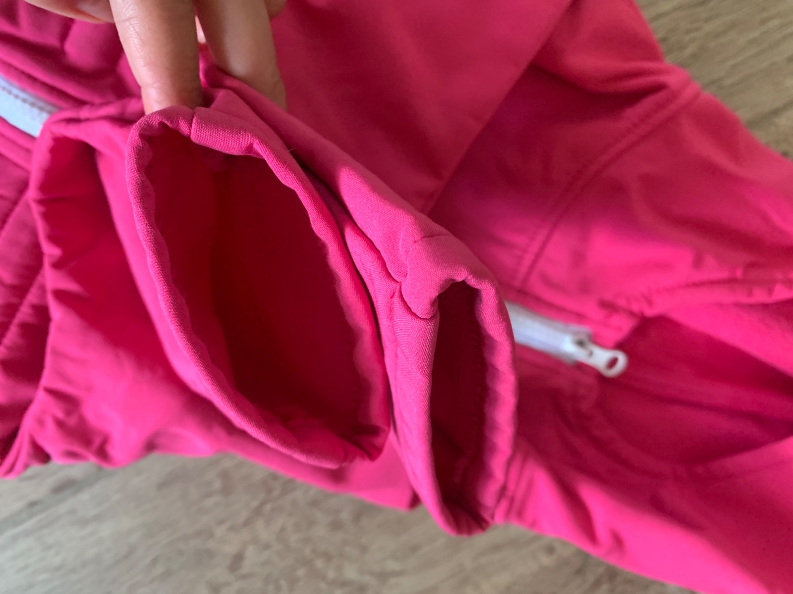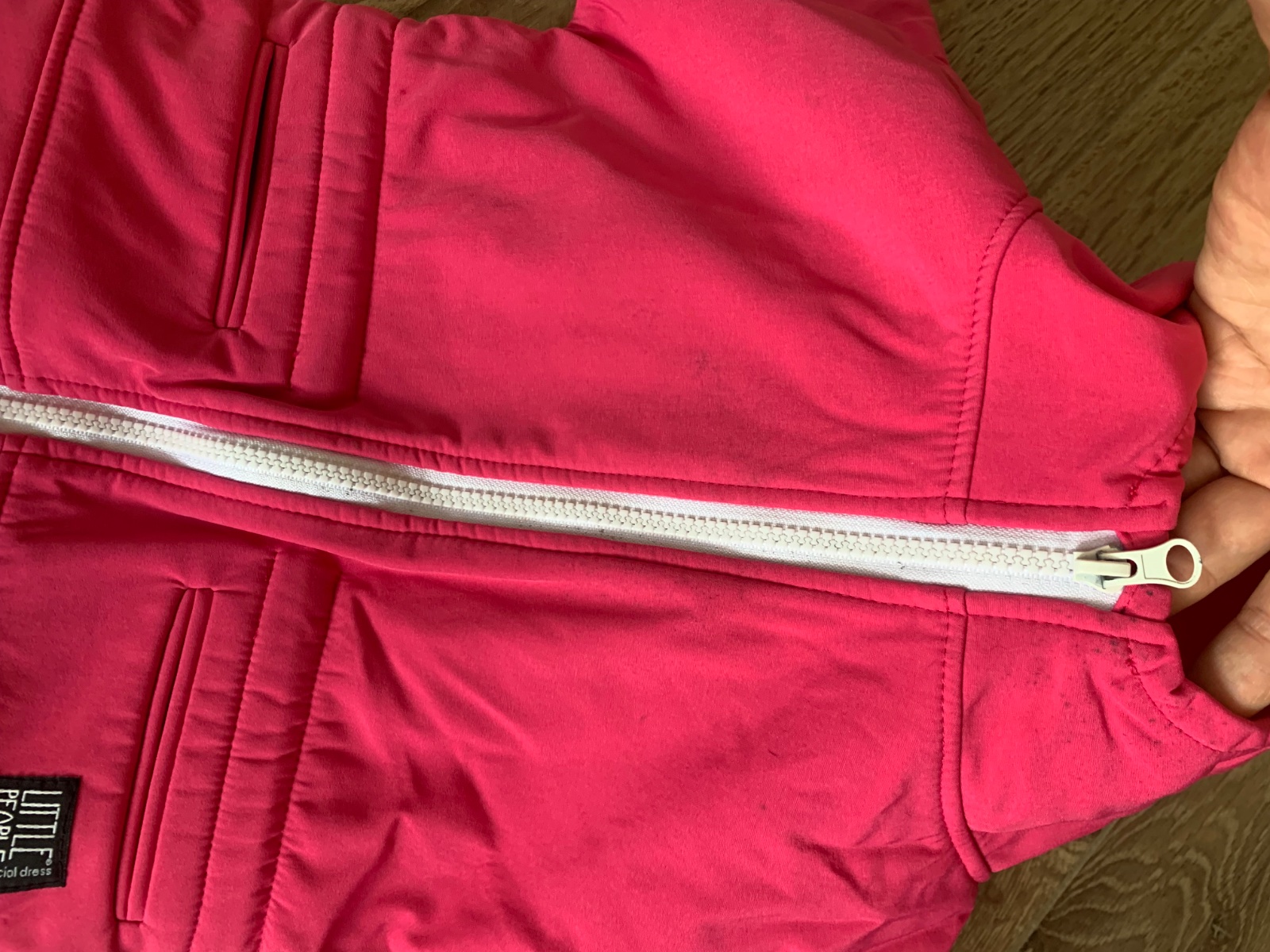 Pri podrobnom skúmaní fliačky pri zipse, aj na prednom diely. Pri nosení nie sú nejako obzvlášt viditeľné, podrobne som ich nafotila a zohľadnila v cene.