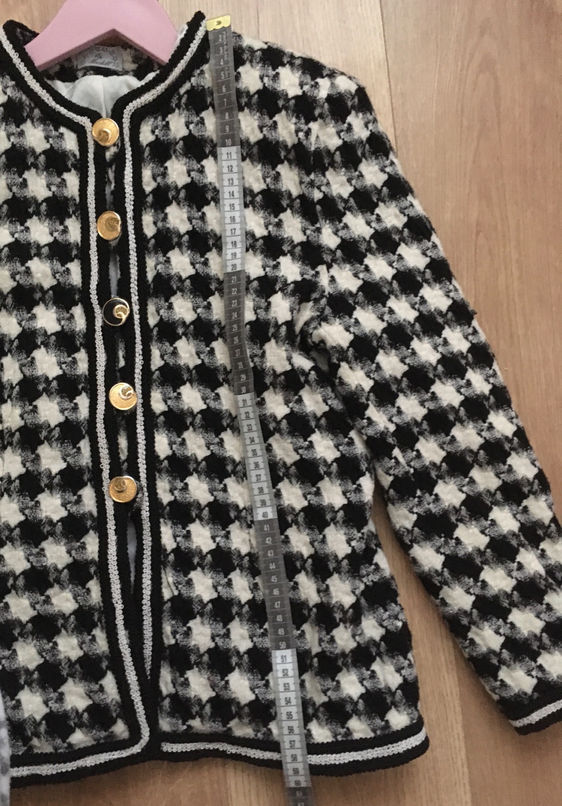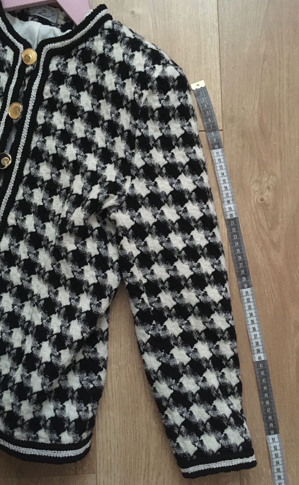 Malo nosene sako z prijemneho pruziveho materialu. Je velmi pohodlne. Pasiky su tmavosivé. Vrecka su len ozdobne (zašite). Rozmery na fotkach.