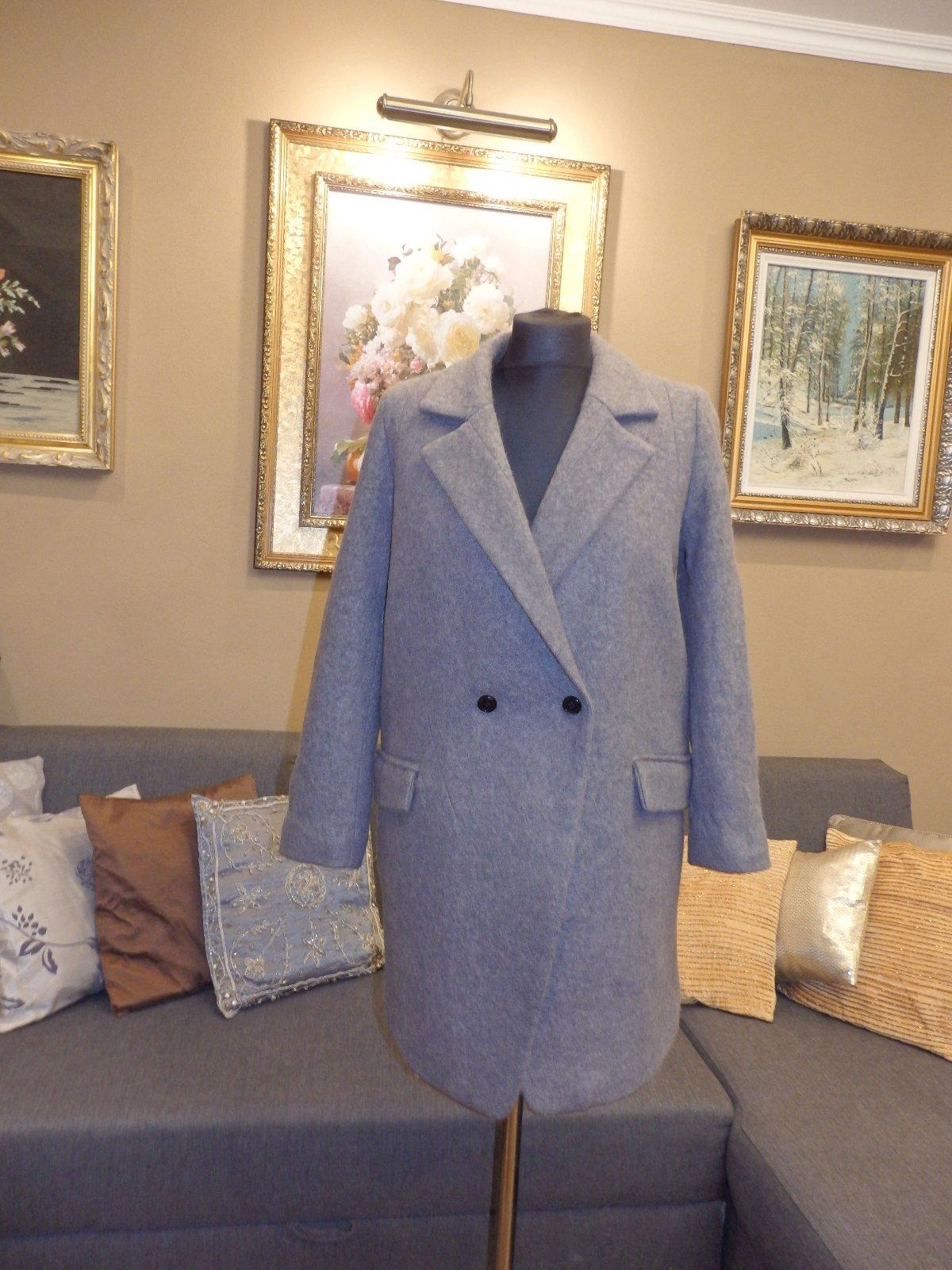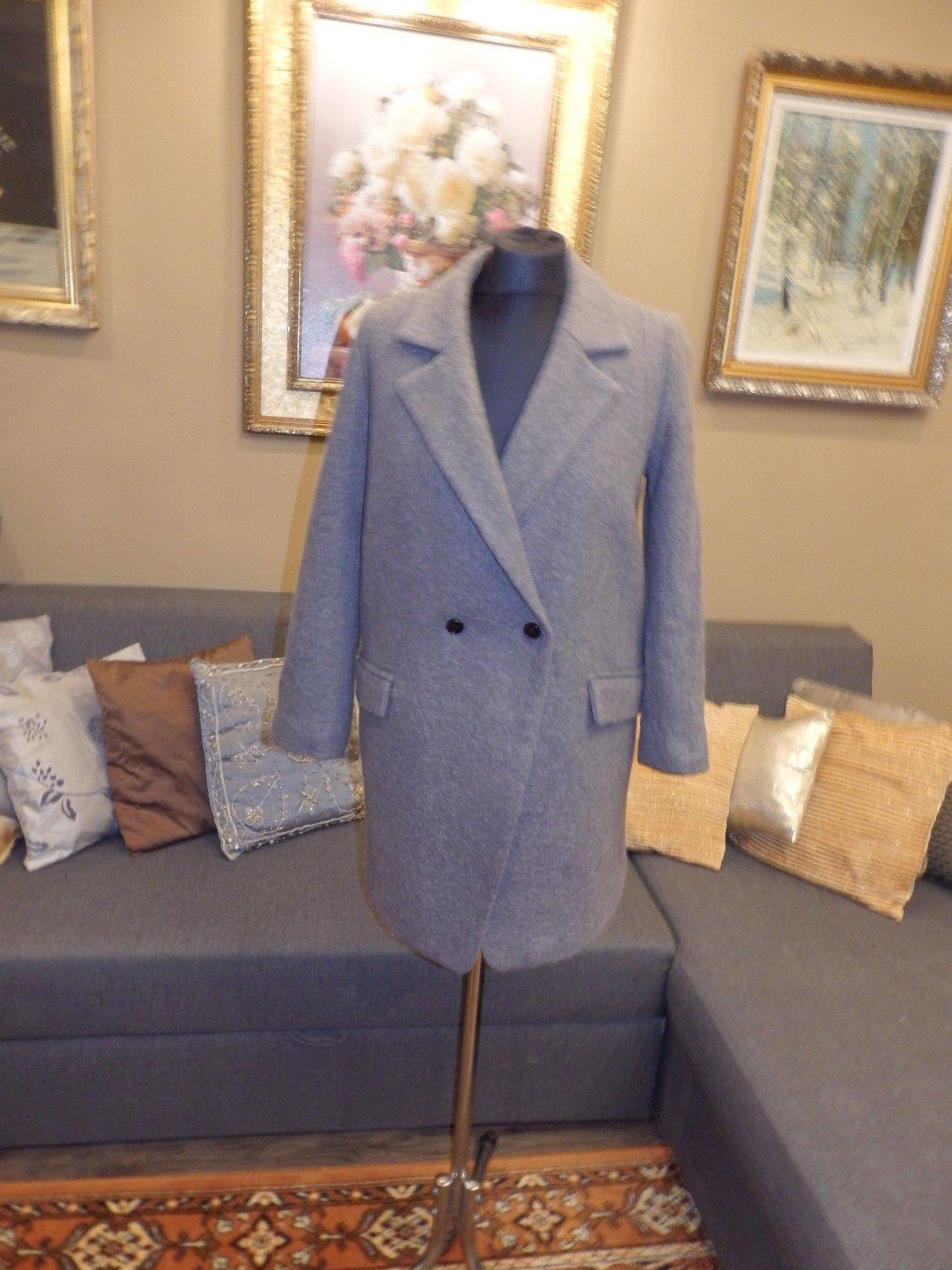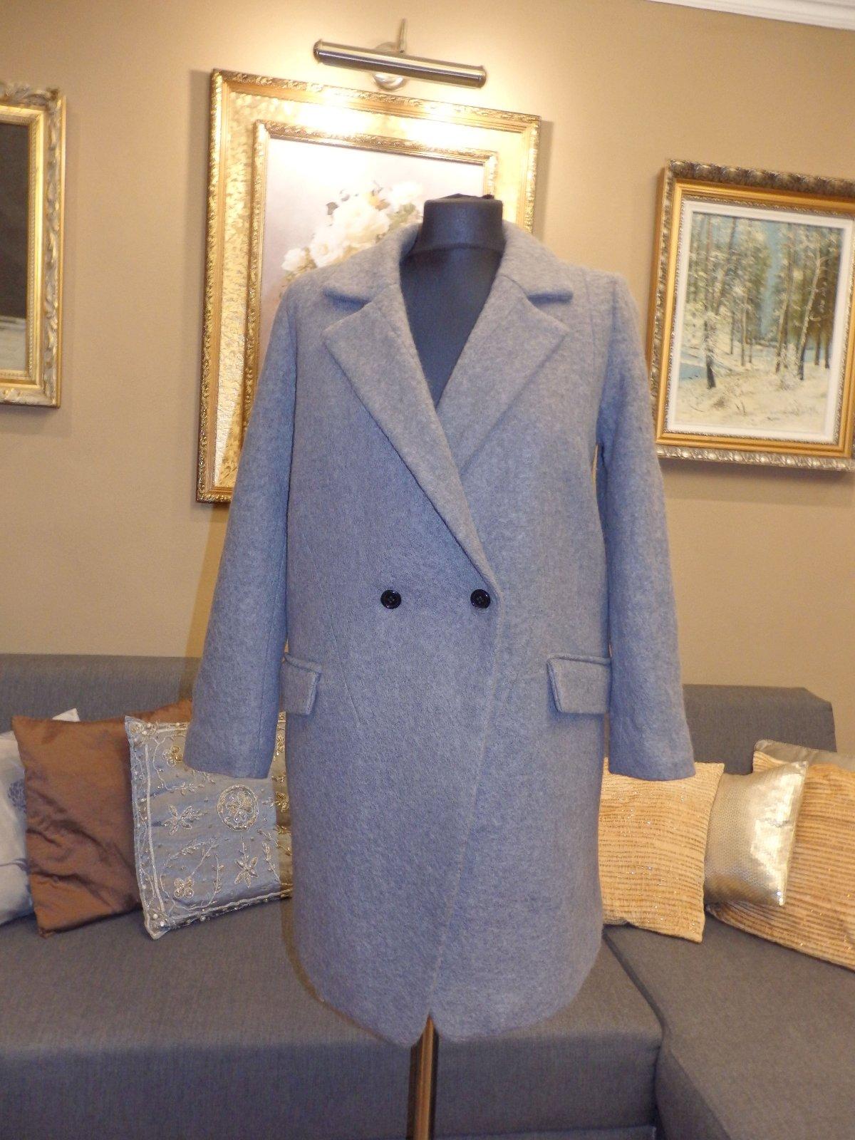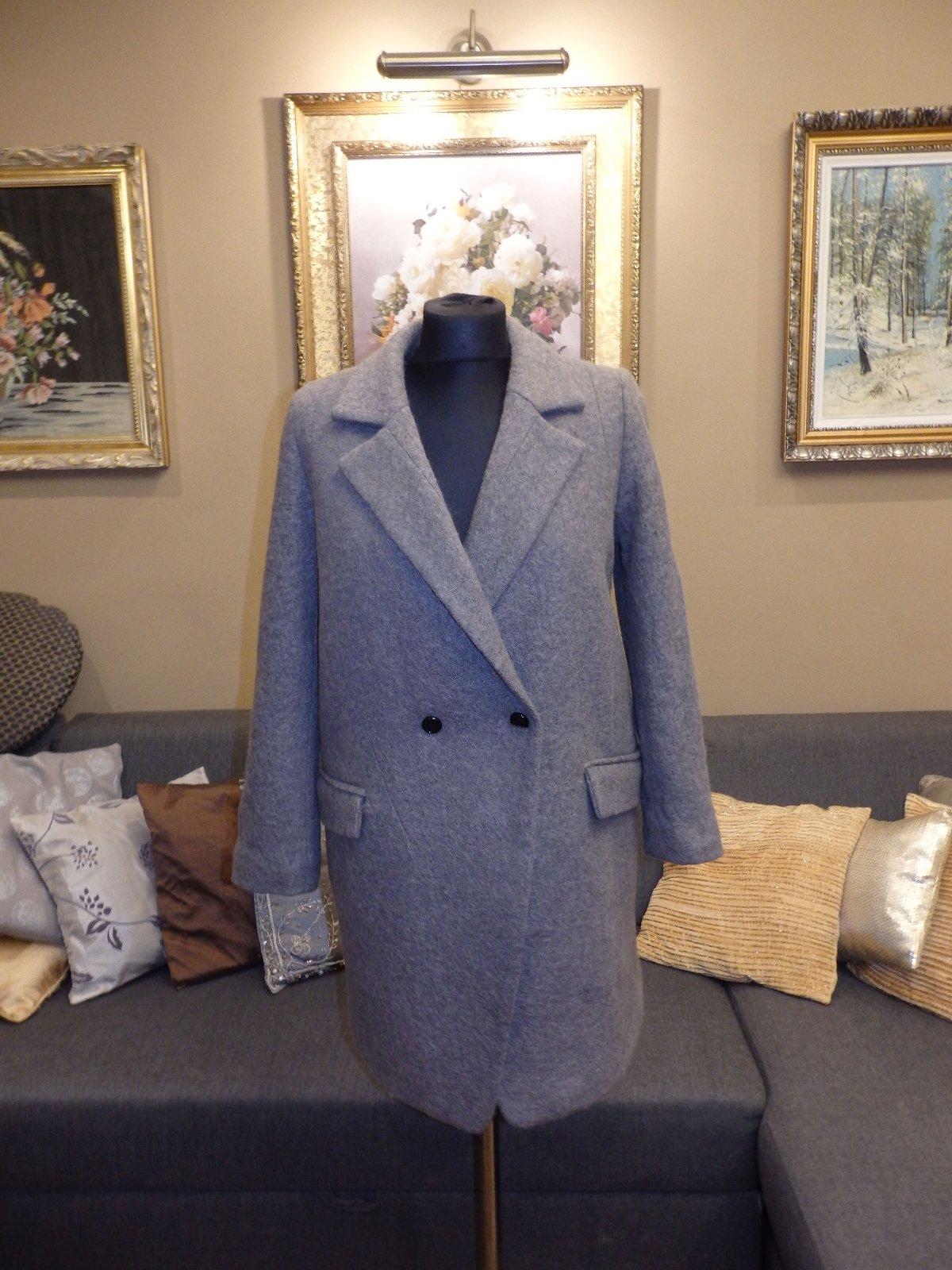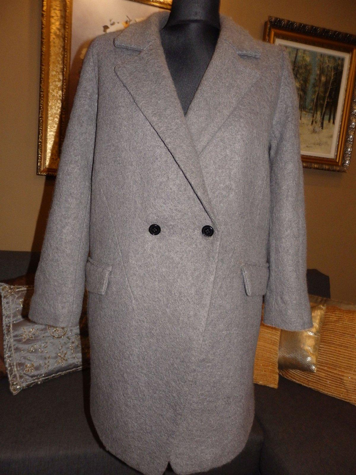 Damsky luxusny vlneny zimny kabat,šedej farby,s podsivkou,extra kvalita,dvojradove zapinanie.ako novy.PC nad 400€