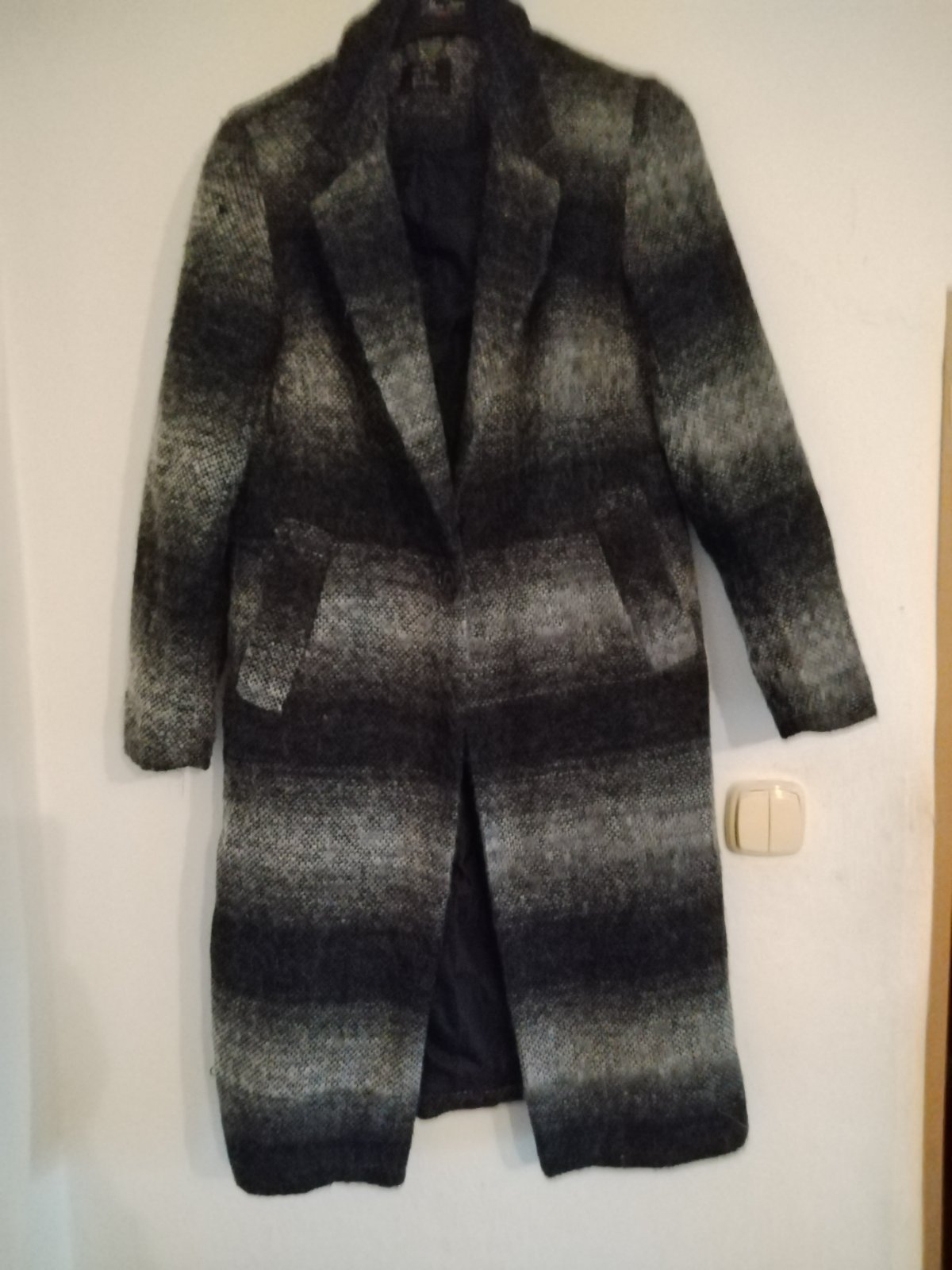 Teplý trendy kabátik....dĺžka 97cm, hrudník 47x2cm, rukáv 72cm