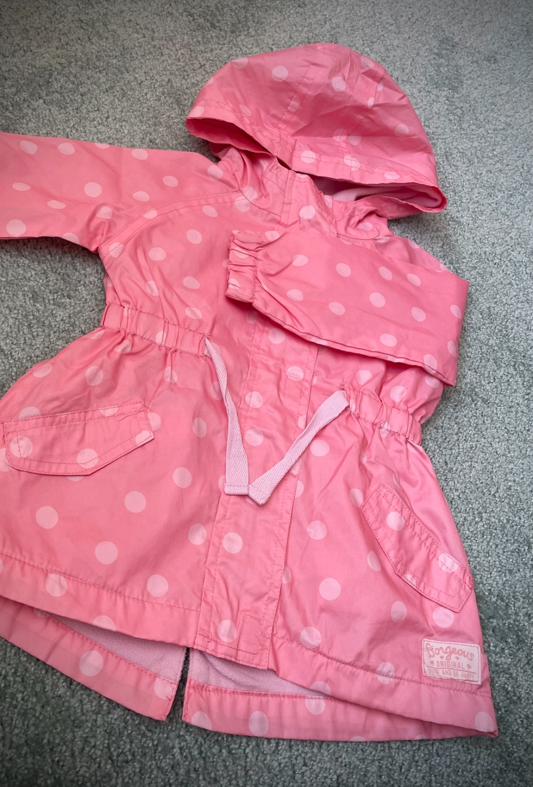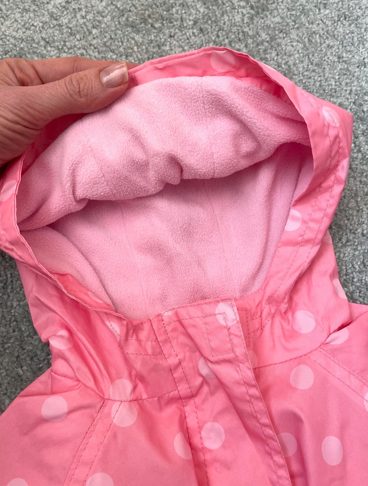 Ľahučká a zároveň zateplená bundička s milými bodkami. Bola dcérkina obľúbená, ale nie je nijak poškodená. Veľmi pekný stav.