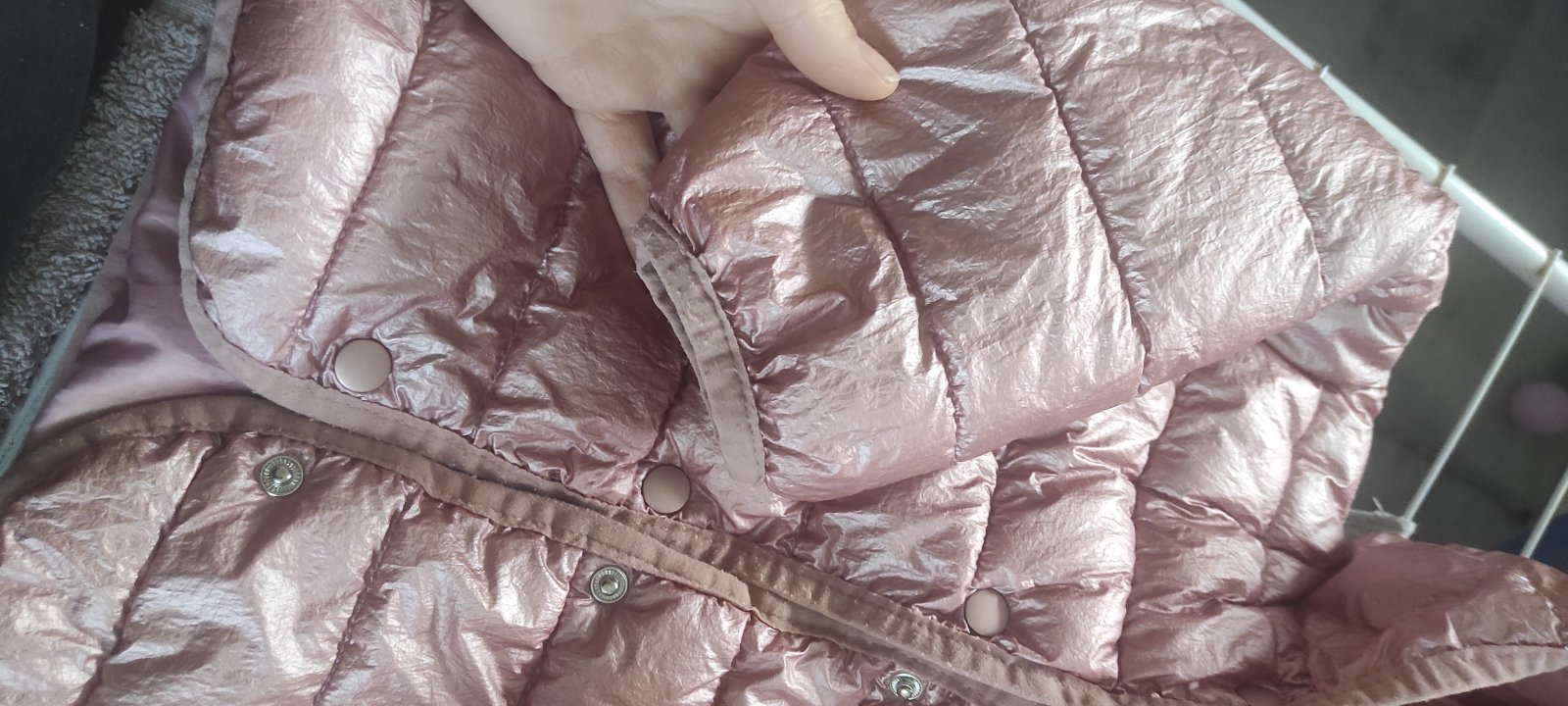 Krásna lesklá nosena bundička má zmolky na rukáve viď foto,ale je krásna stále